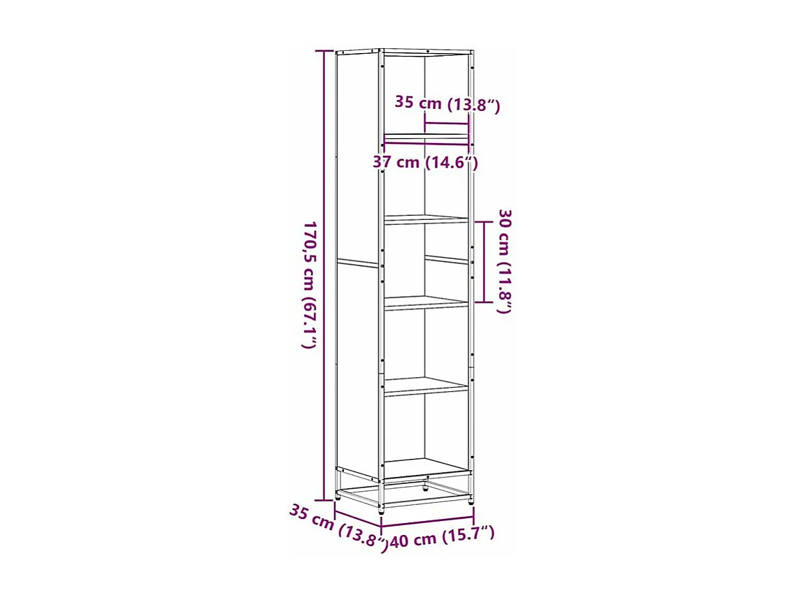 Bibliothèque chêne fumé 40x35x139 bois d'ingénierie