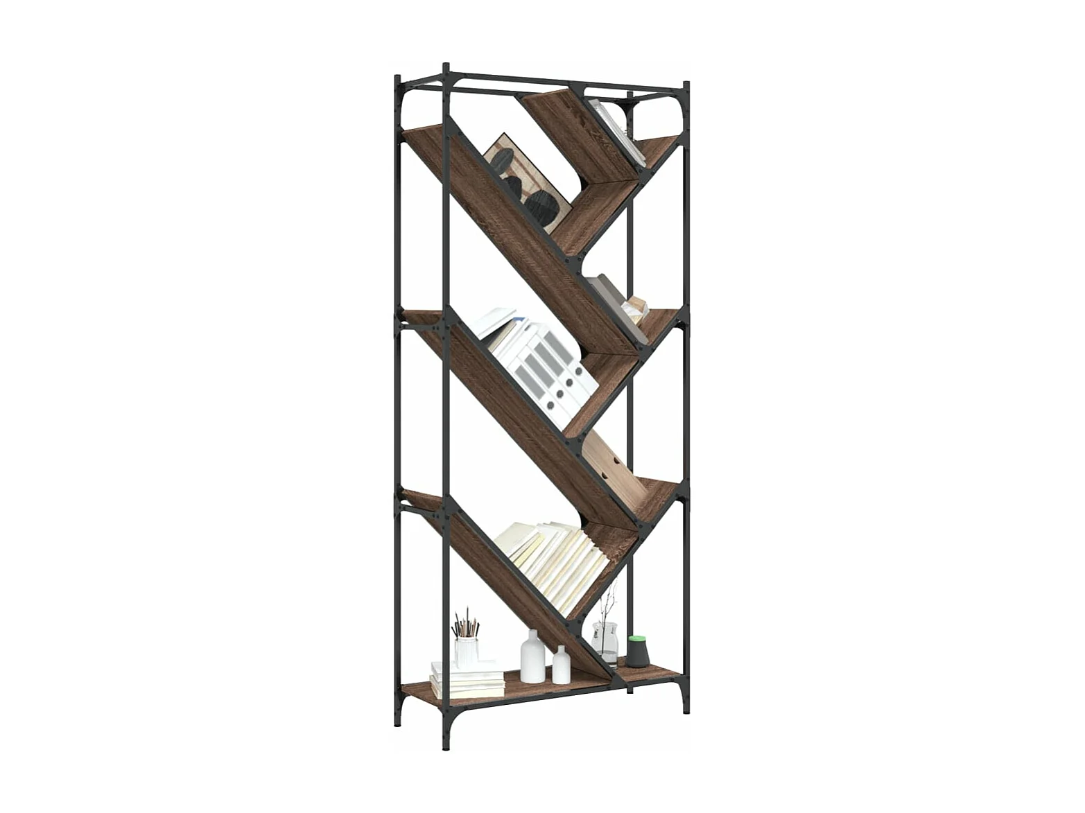 Bibliothèque chêne marron 79x30x180 bois ingénierie et métal