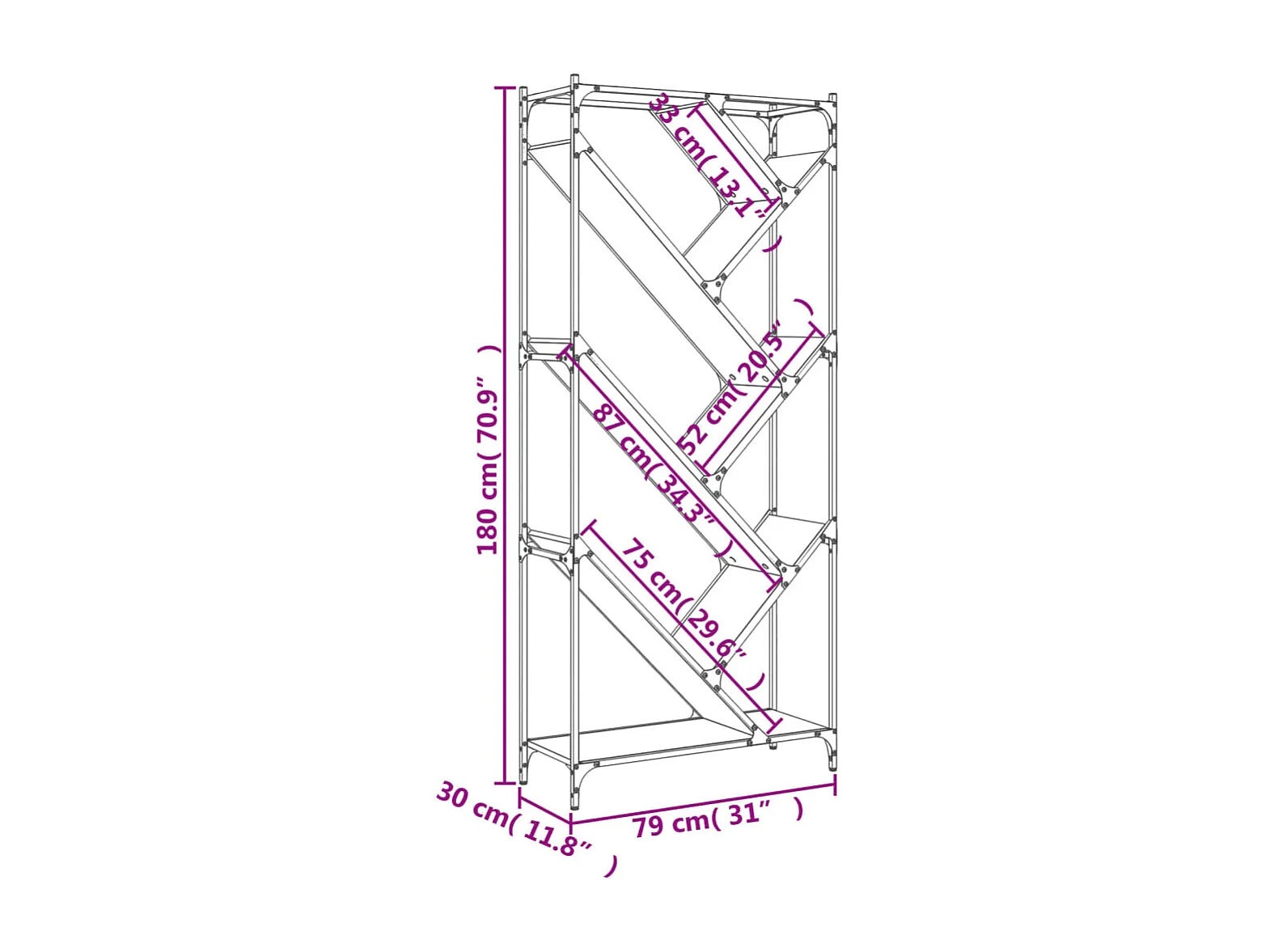 Bibliothèque chêne marron 79x30x180 cm bois ingénierie et métal