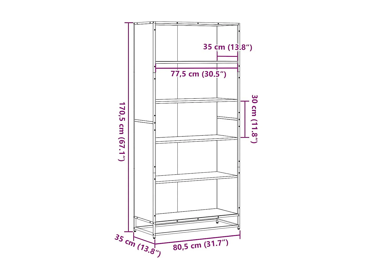 Bibliothèque chêne marron 80,5x35x170,5 cm bois d'ingénierie