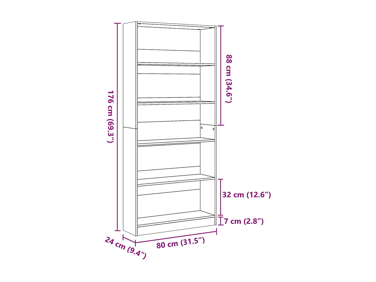 Bibliothèque Chêne Sonoma 80x24x176 cm Bois d'ingénierie