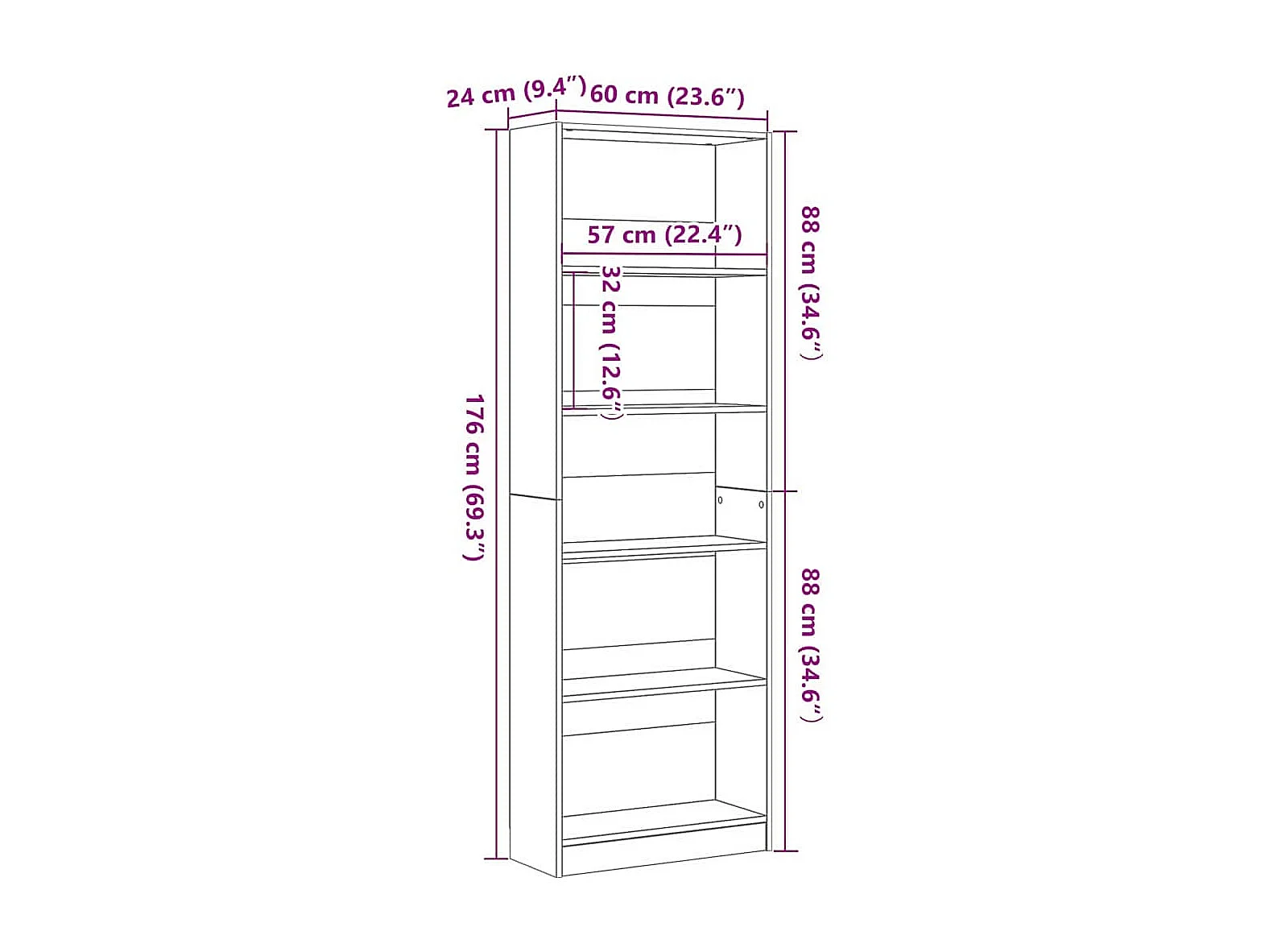 Bibliothèque Chêne noir 60 x 24 x 176 cm Bois d'ingénierie