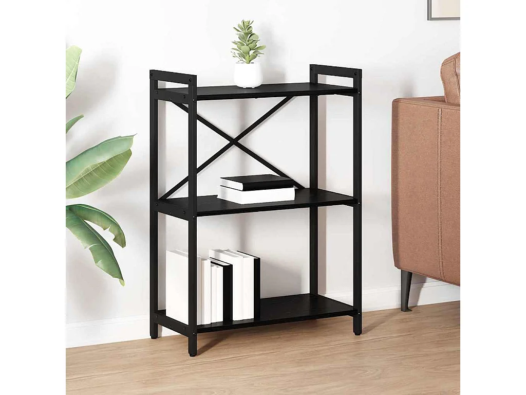 Bibliothèque à 3 niveaux noir 60x30x60 cm bois d'ingénierie