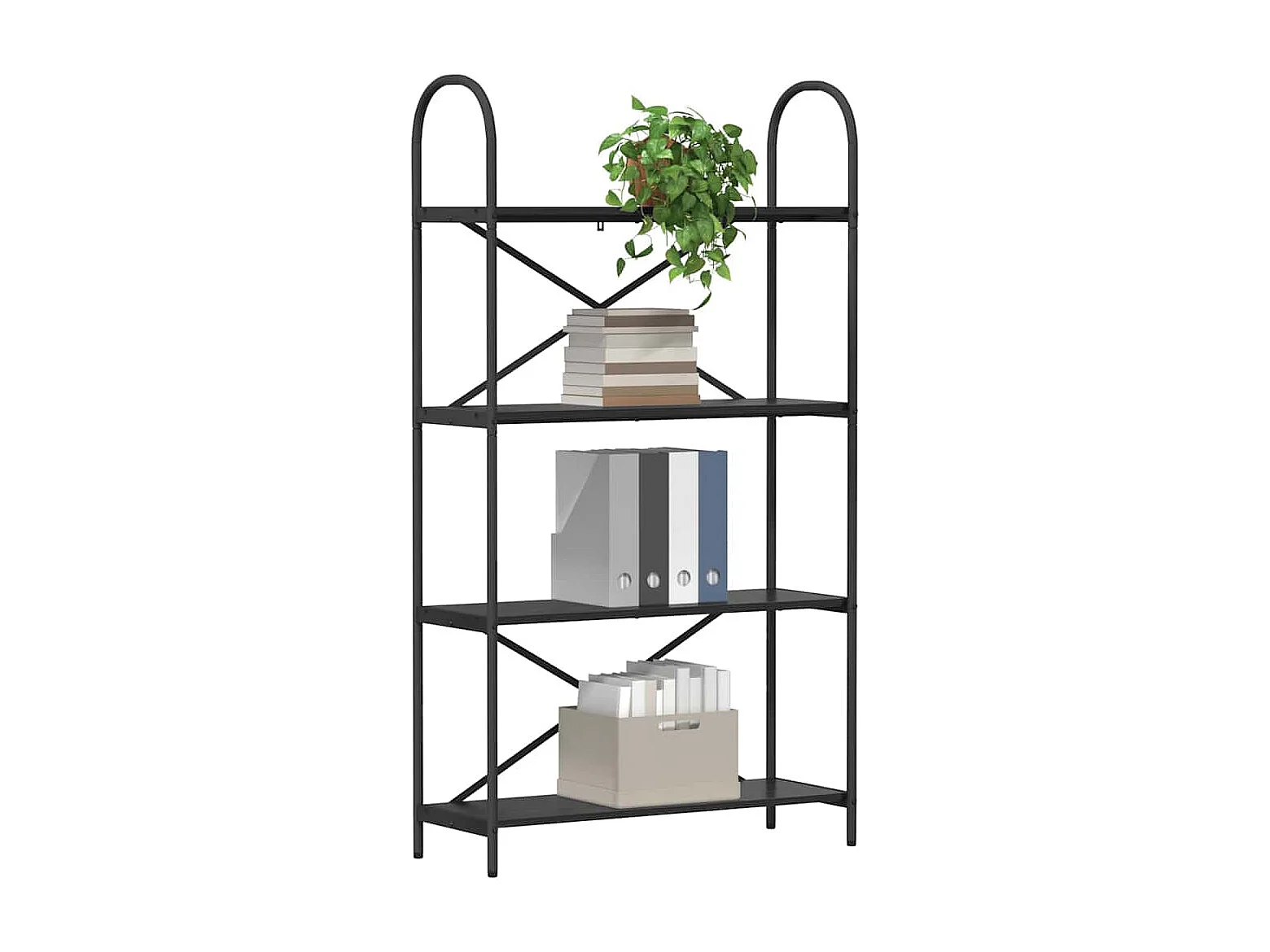 Bibliothèque noir 80x30x78,5 cm bois d'ingénierie et fer
