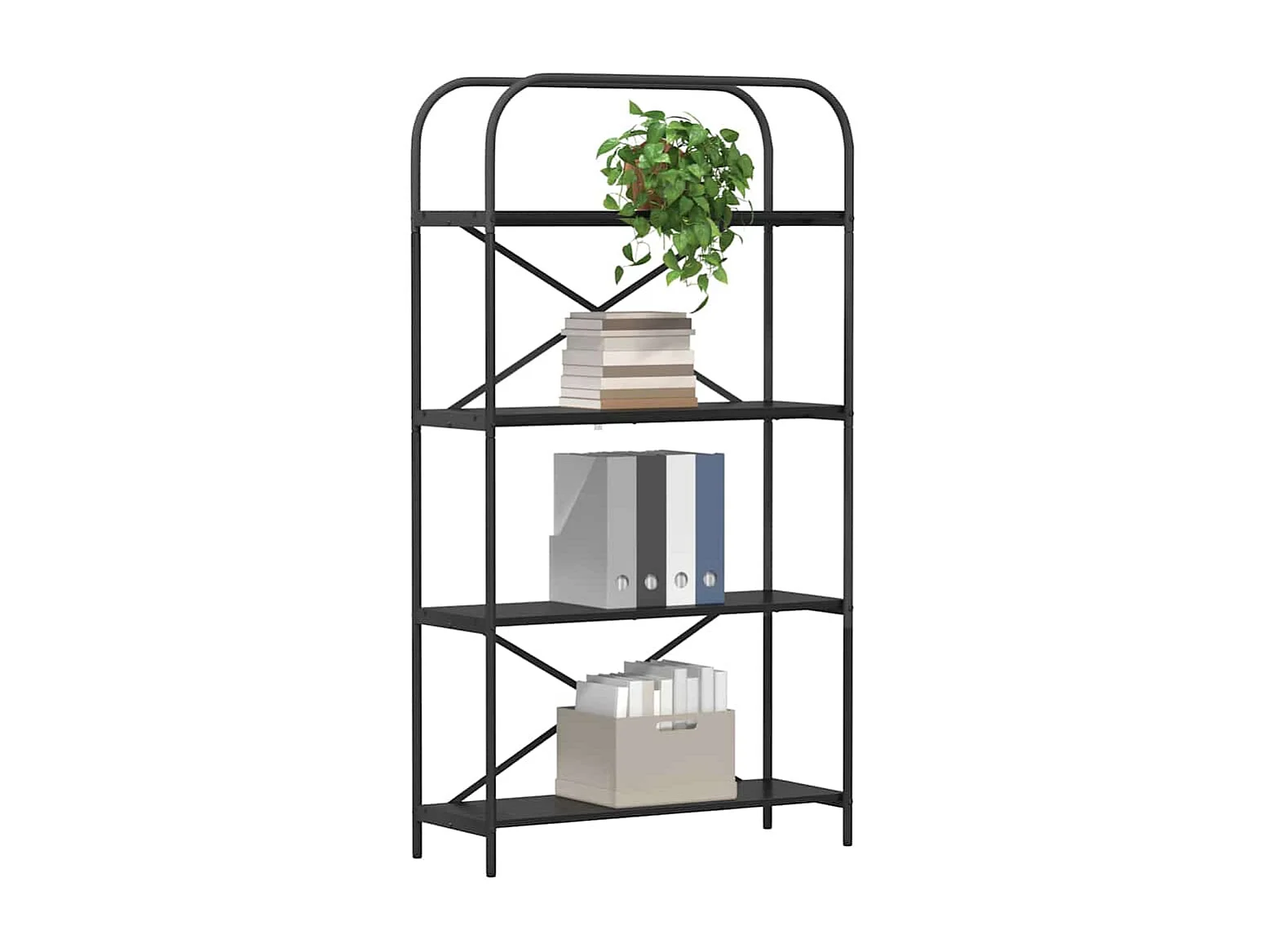 Bibliothèque noir 80x30x78,5 cm bois d'ingénierie et fer