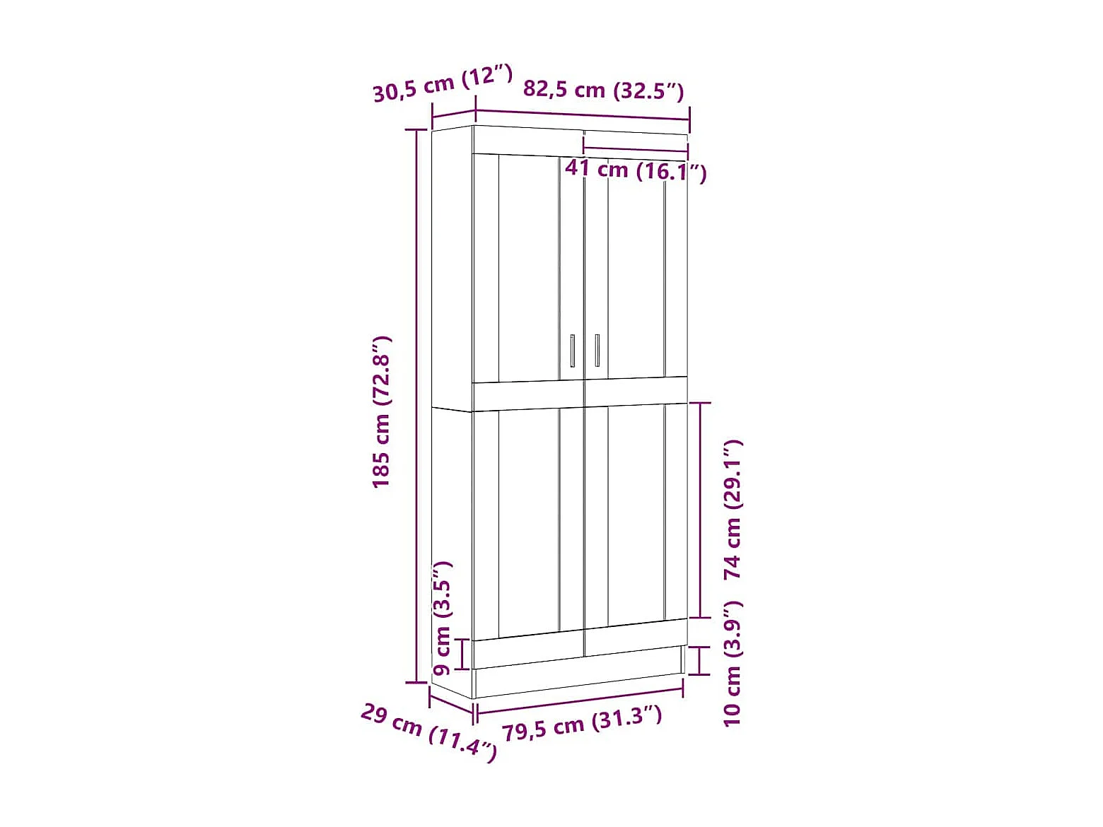 Bibliothèque Chêne noir 82.5 x 30.5 x 185 cm Bois d'ingénierie