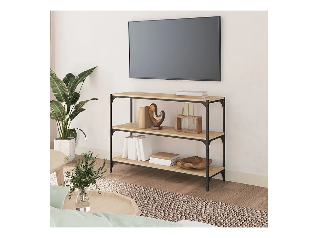 Meuble TV Chêne sonoma 100x33x100 cm Bois d'ingénierie et acier