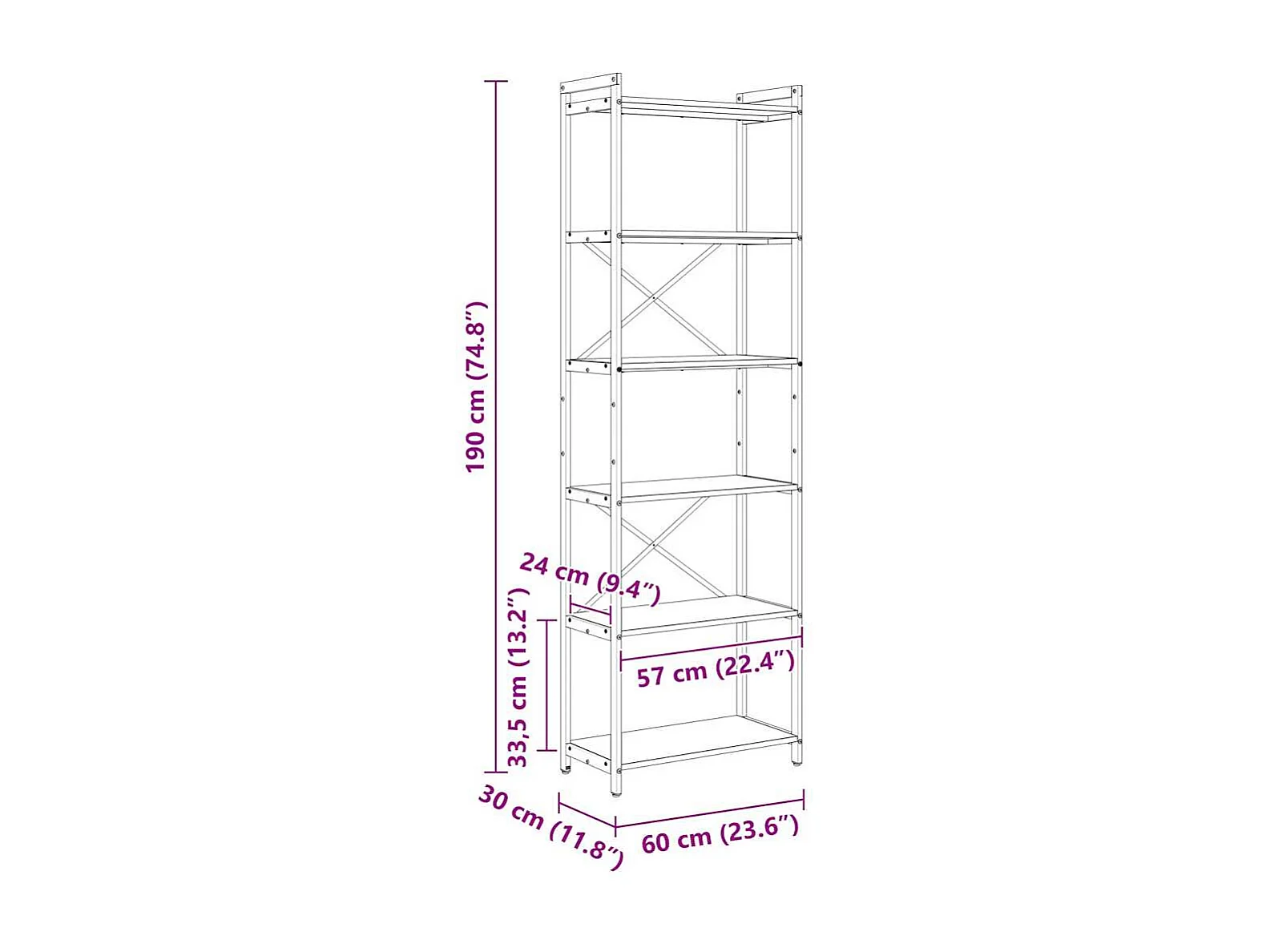Bibliothèque Chêne sonoma 60 x 30 x 118 cm Bois d'ingénierie