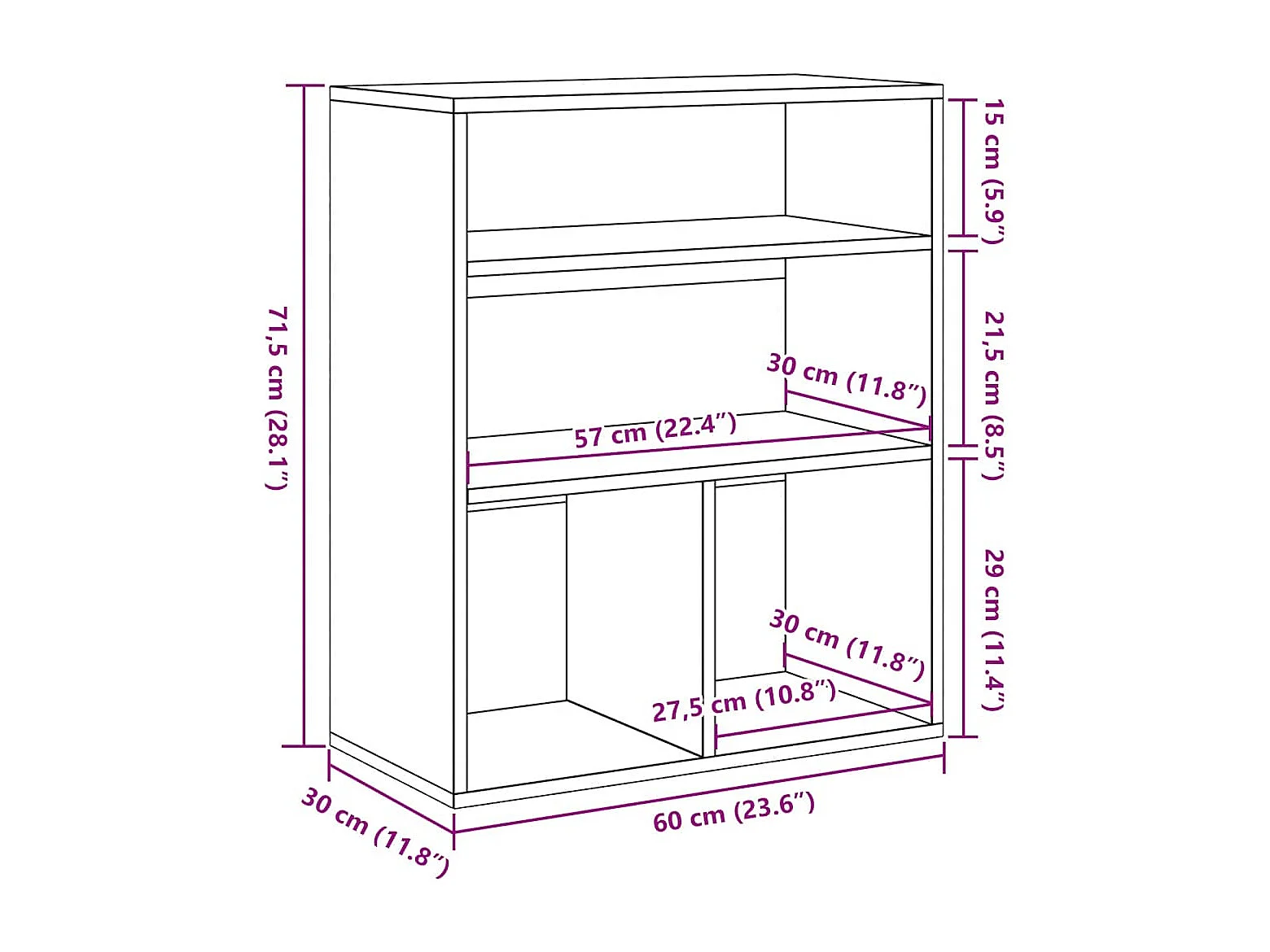 Bibliothèque à 3 niveaux vieux bois 60x30x60 cm bois ingénierie