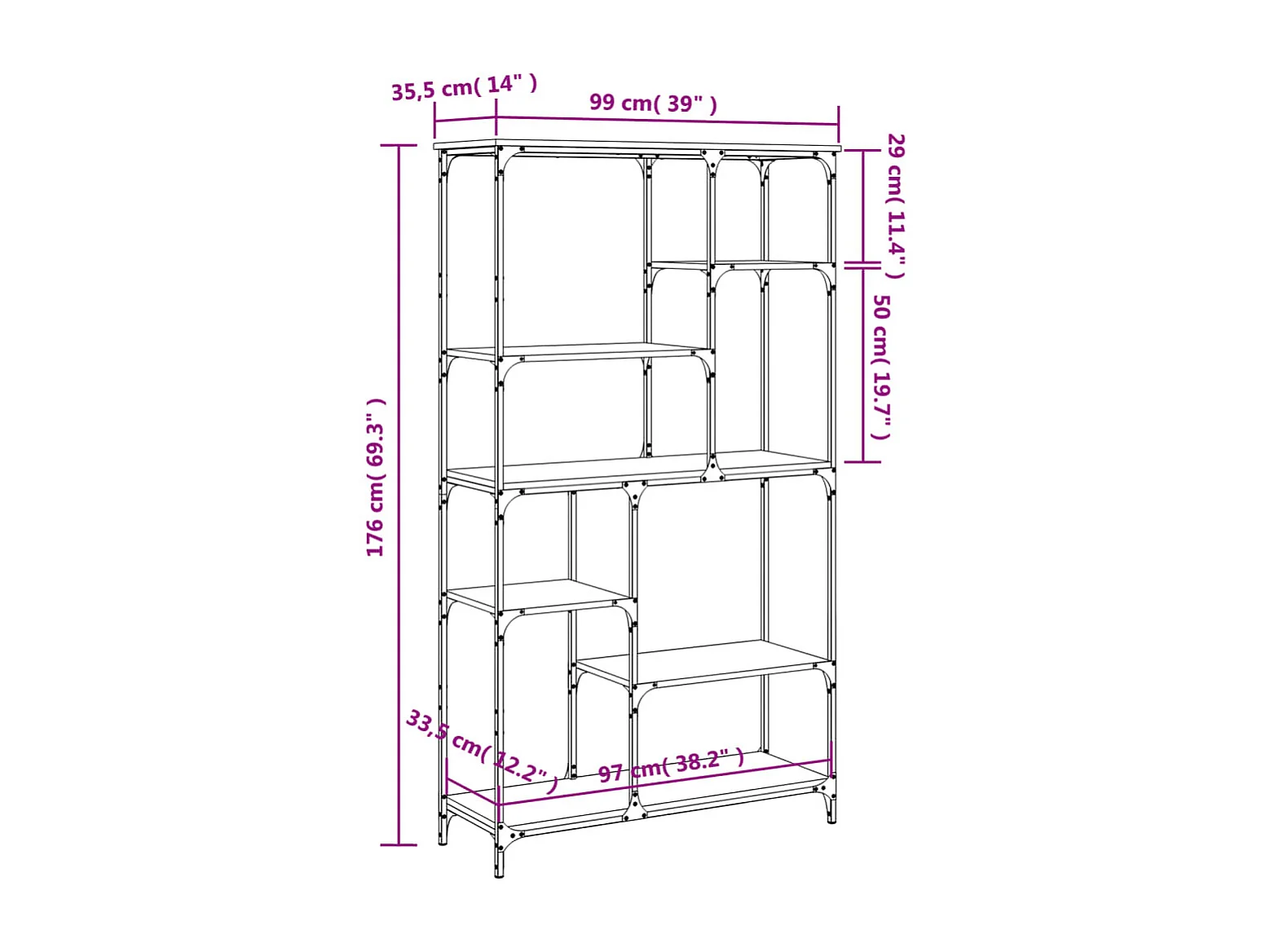 Bibliothèque chêne sonoma 99x35,5x176 bois ingénierie acier