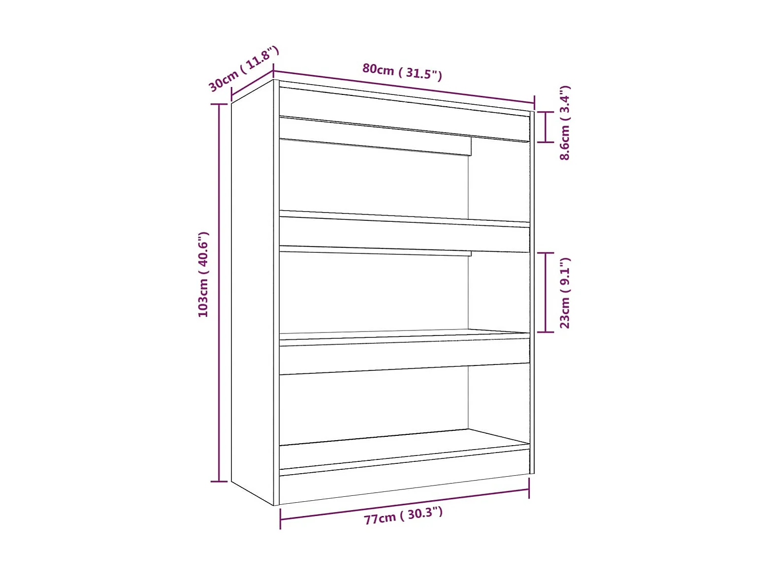 Bibliothèque-Séparateur de pièce Gris 80x30x103,5 Pin solide