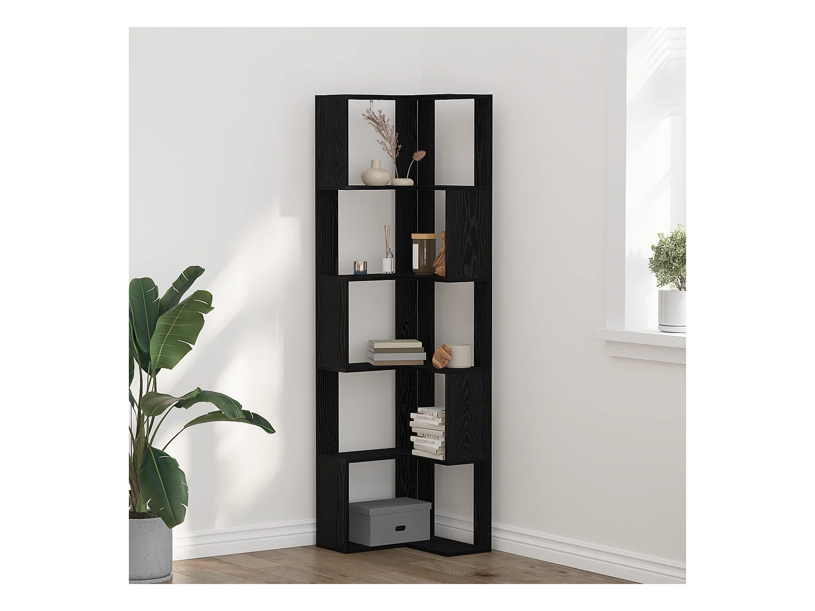 Bibliothèque d'angle 5 étagères Chêne noir 50x50x179 cm Bois d'ingénierie