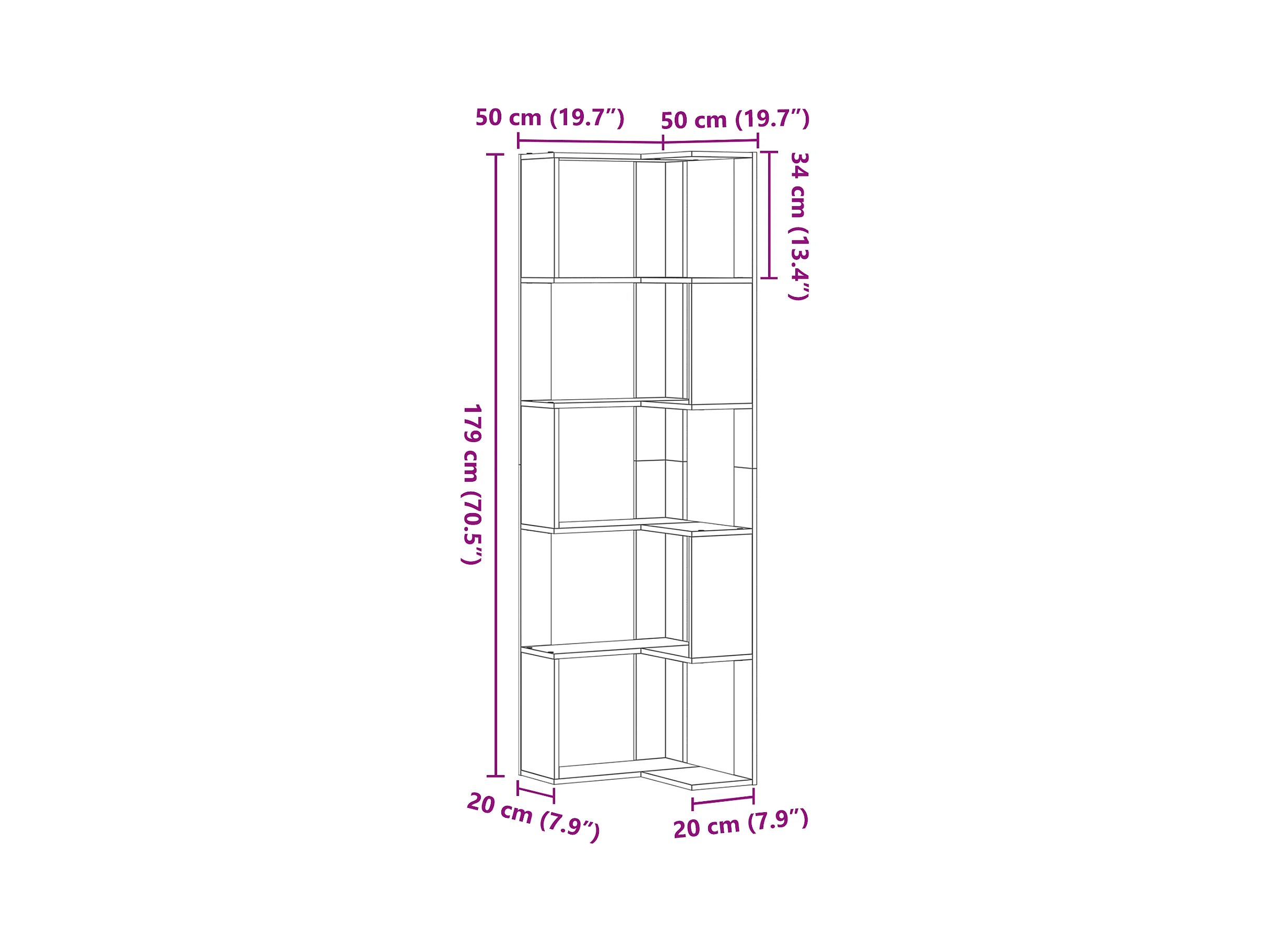 Bibliothèque d'angle | Etagère de rangement | Meuble de rangement 5 étagères Chêne noir 50x50x179 cm Bois d'ingénierie