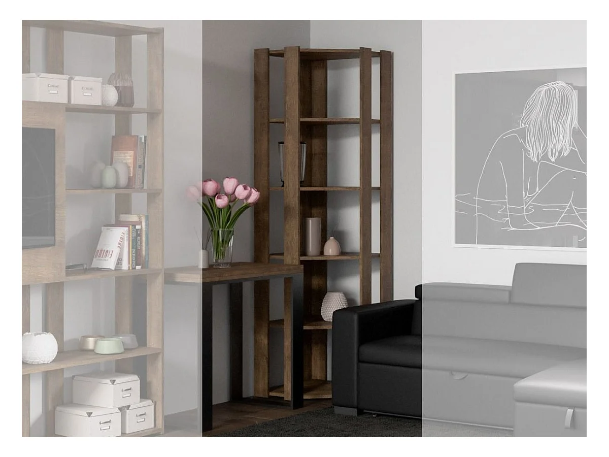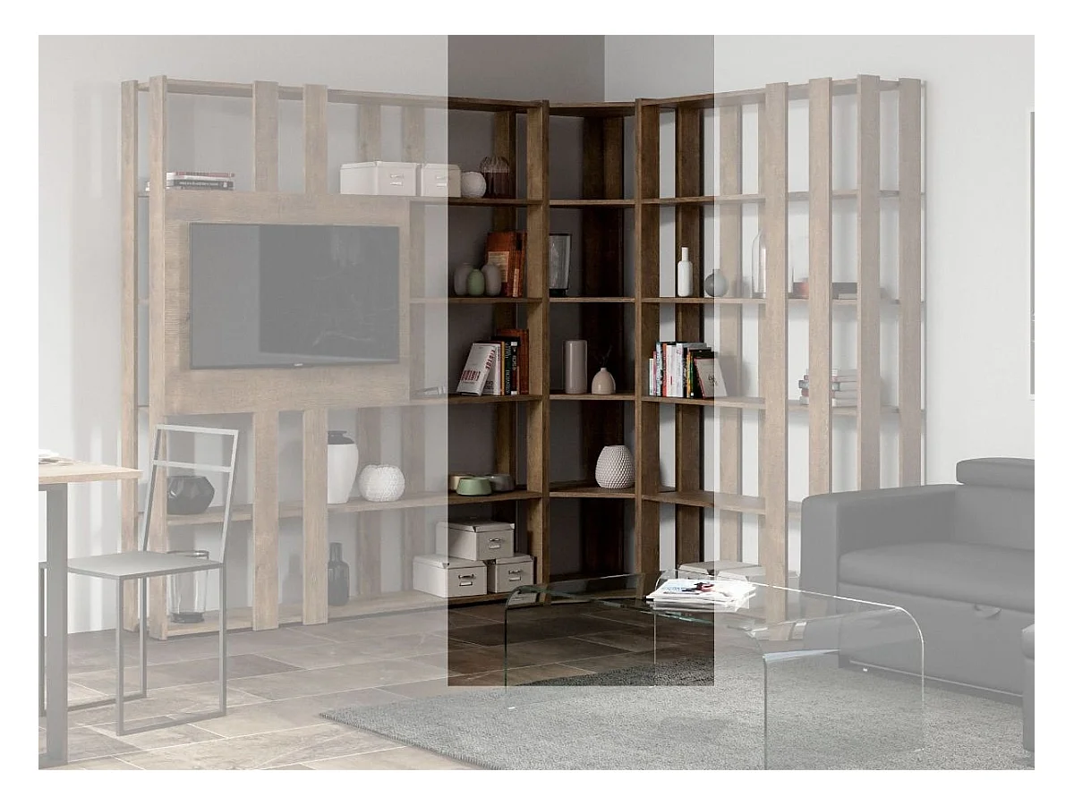 Bibliothèque d'angle 5 niveaux bois noyer Kalo B L 60cm