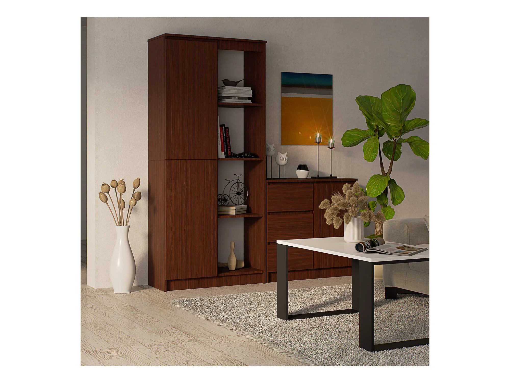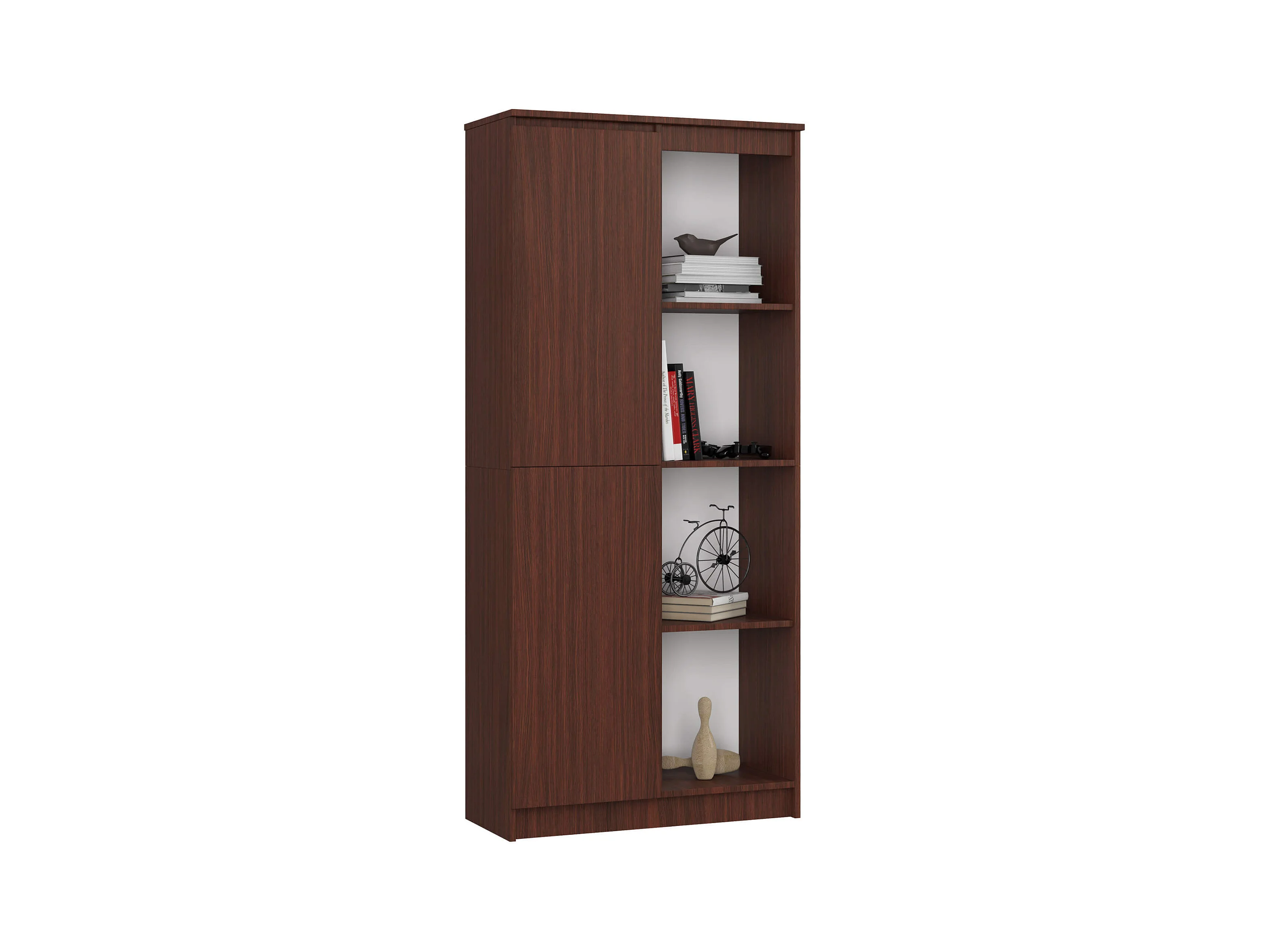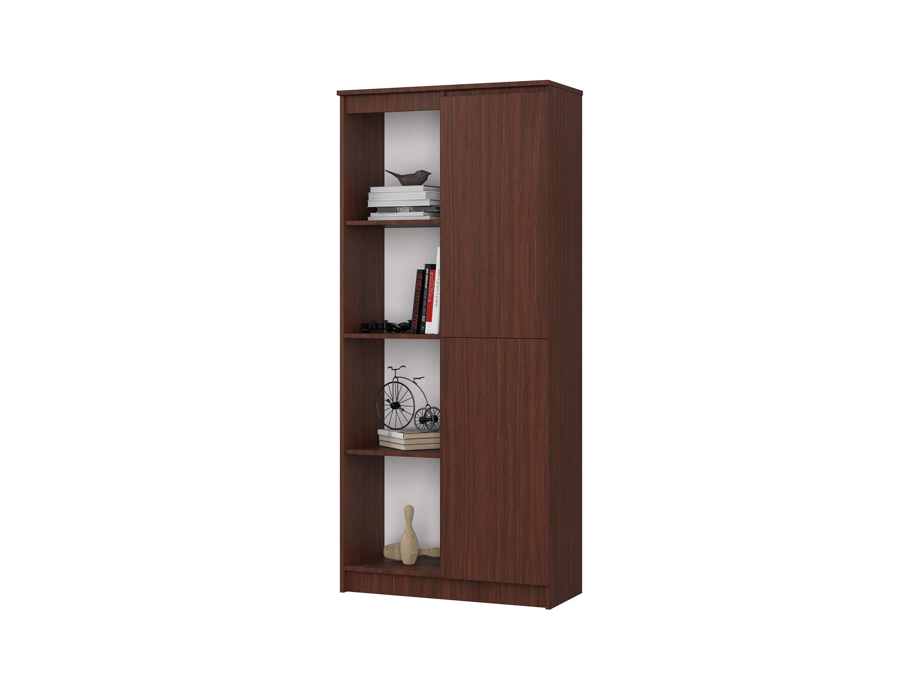 Bibliothèque de bureau AKORD R80 Wengé 80 cm 1 porte façade Wengé mat 8 étagères 80x35x180 cm