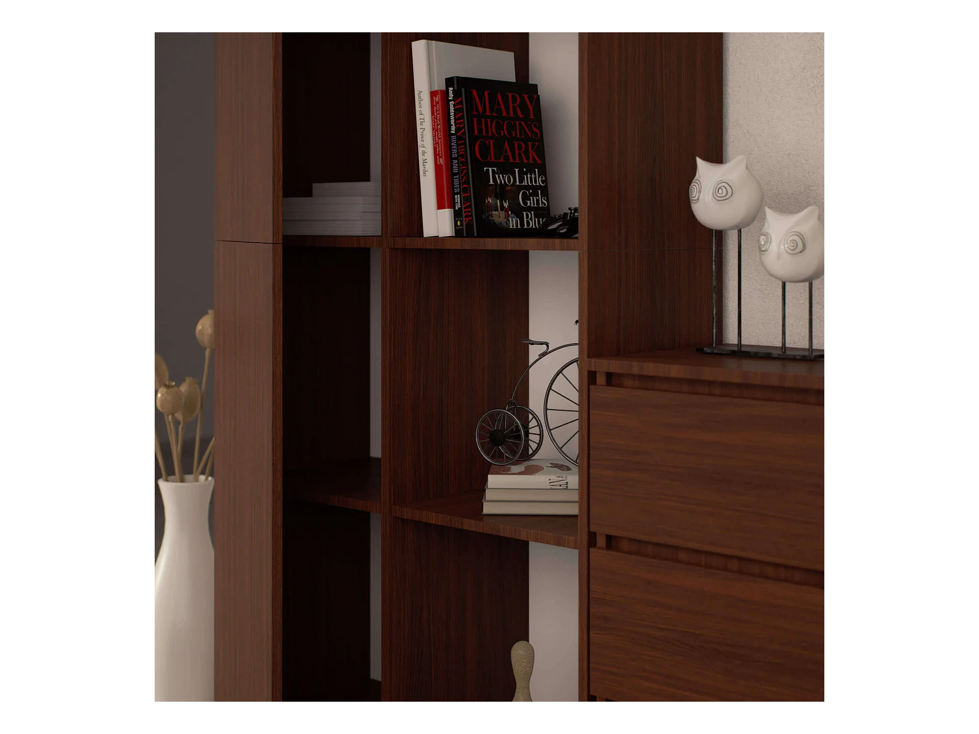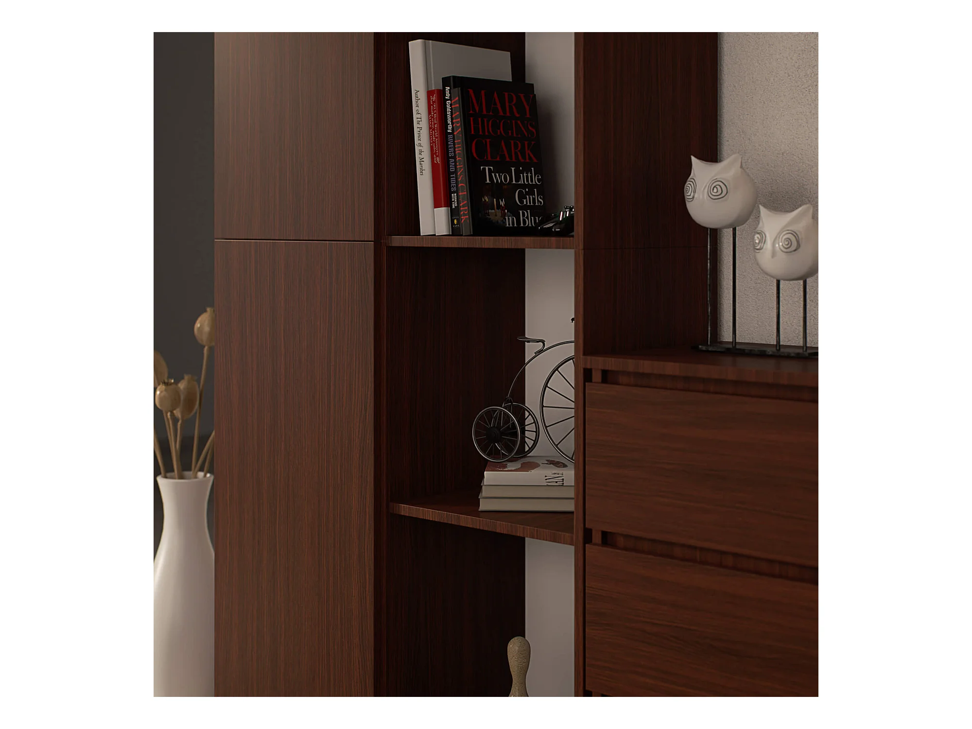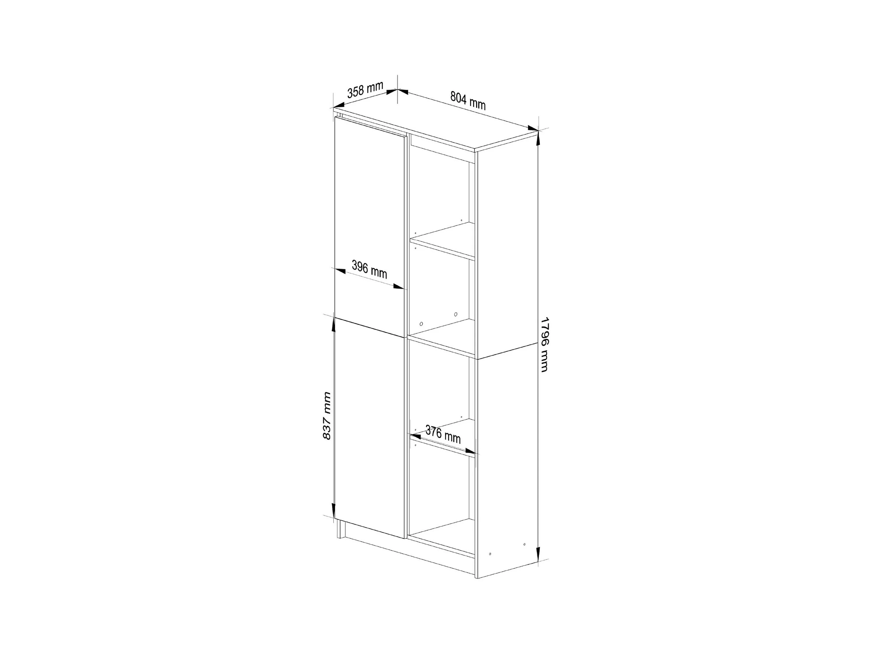 Bibliothèque de bureau AKORD R80 Wengé 80 cm 1 porte façade Wengé mat 8 étagères 80x35x180 cm