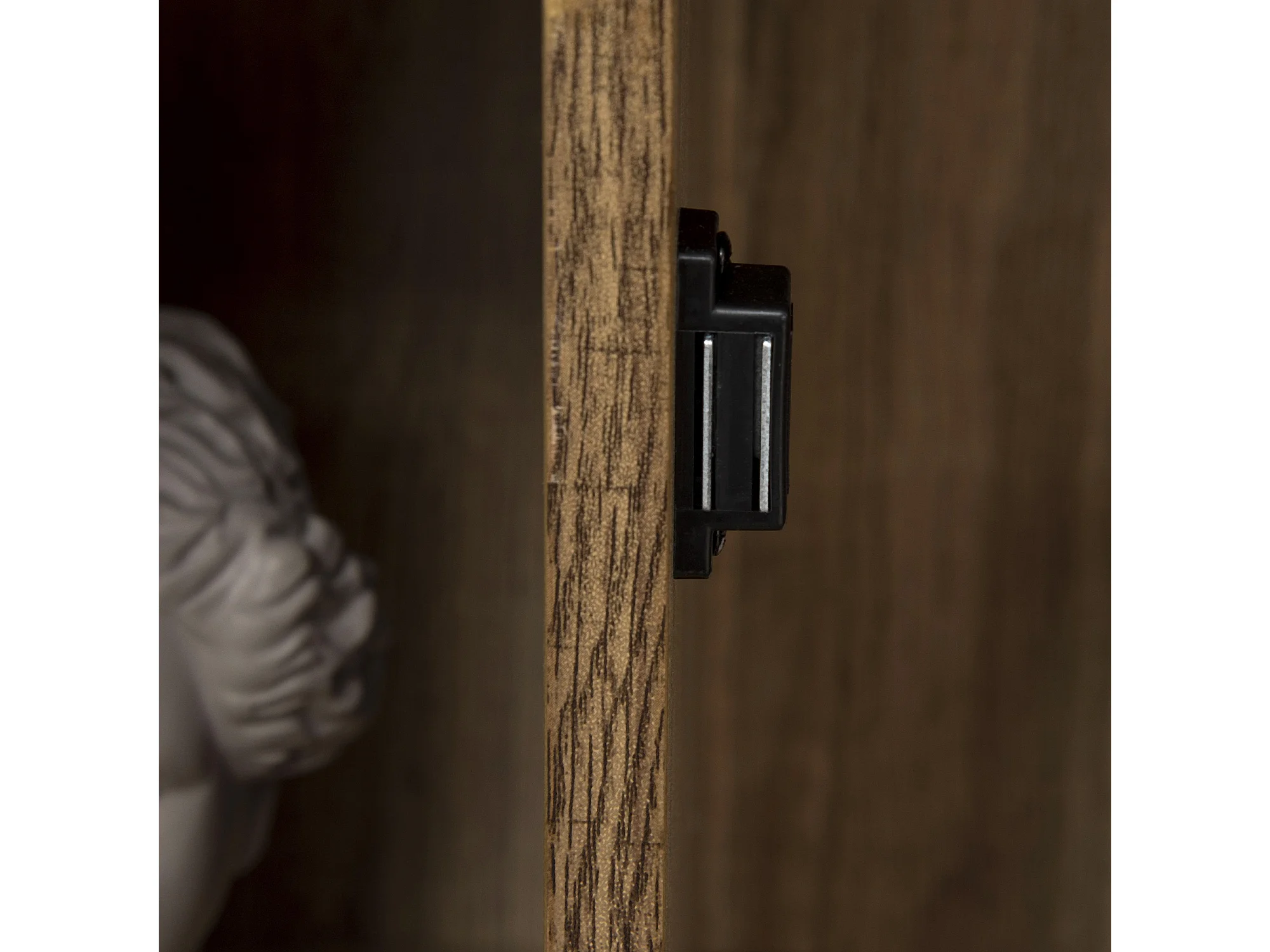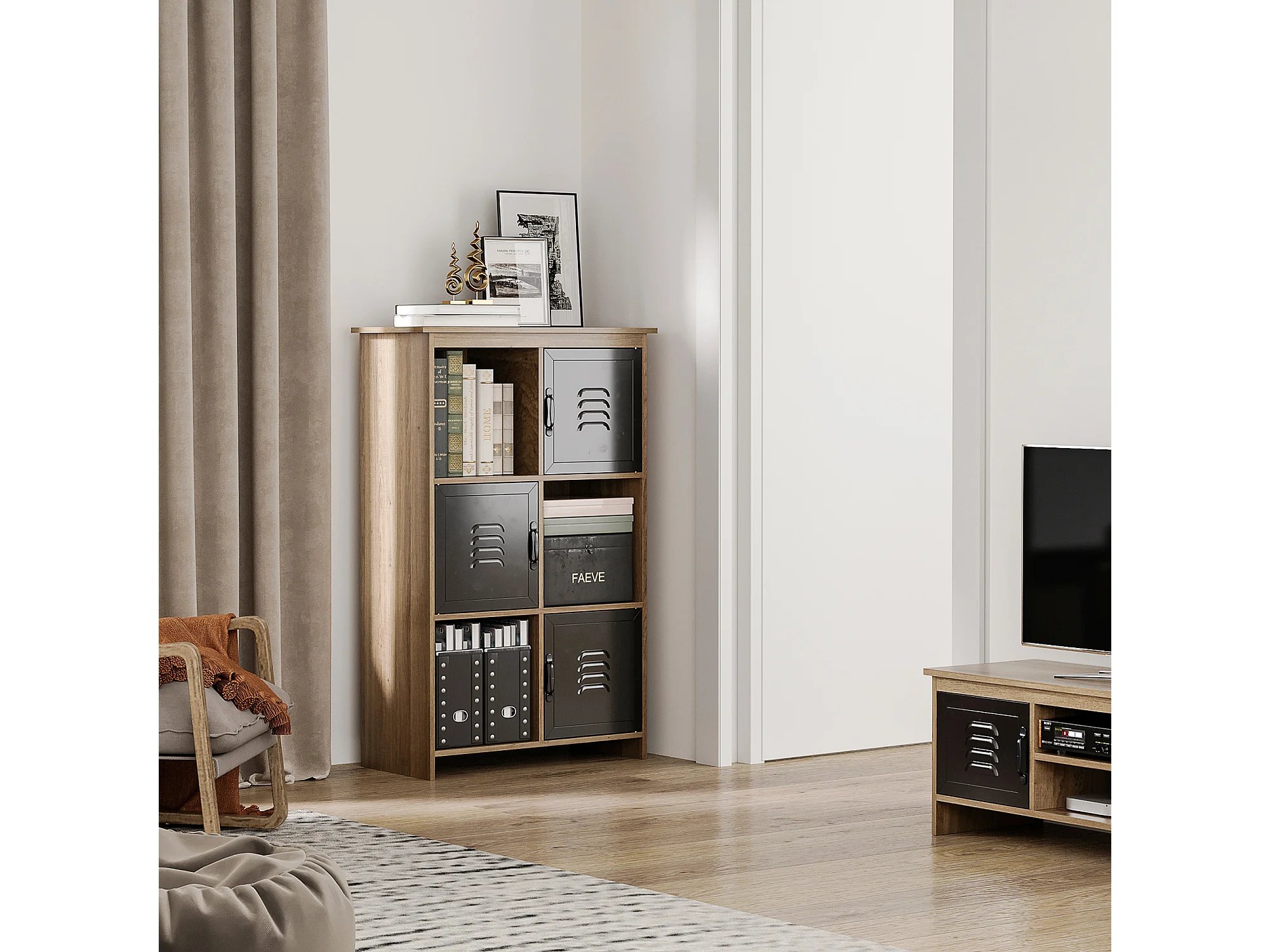Bibliothèque design industriel - meuble de rangement 3 niches 3 casiers - panneaux particules aspect bois veinage portes métal noir