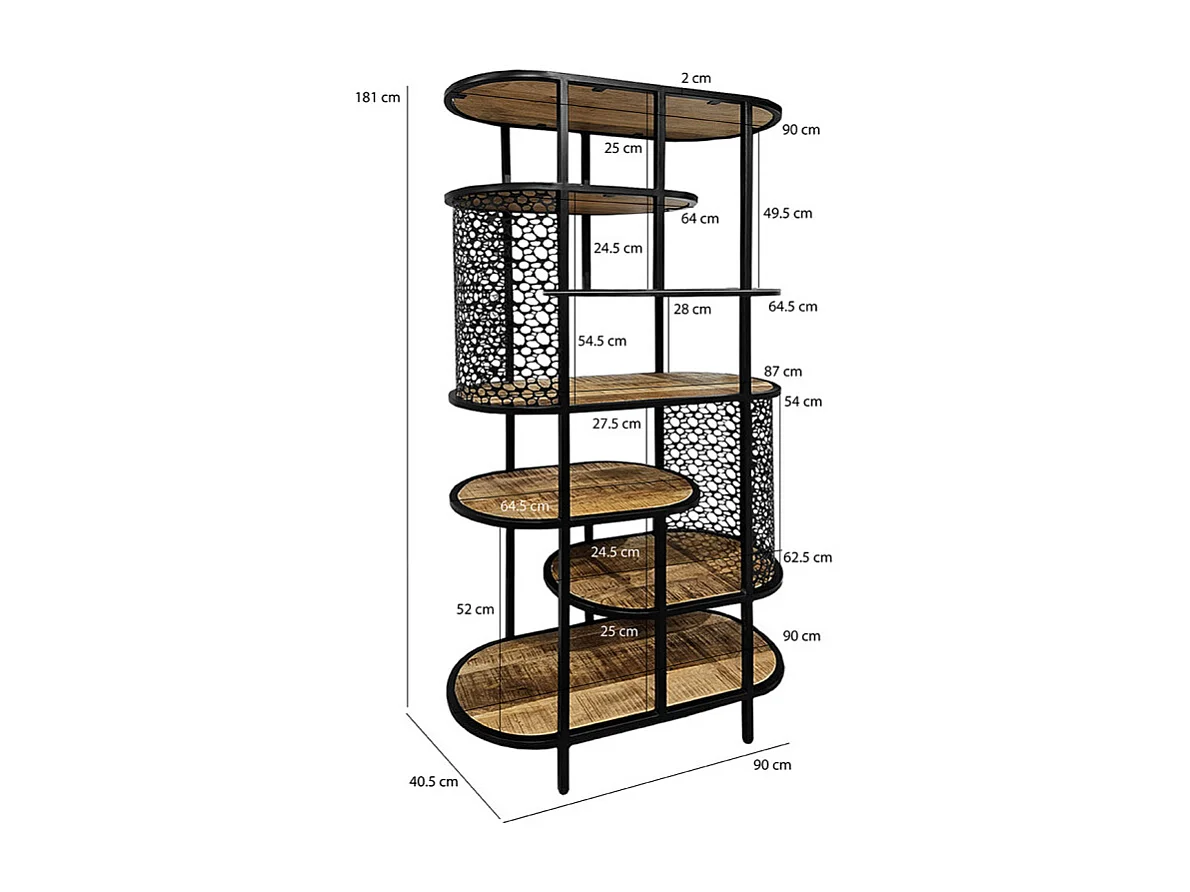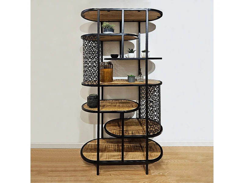 Bibliothèque déstructurée H.181 cm bois de manguier et métal - MANHO
