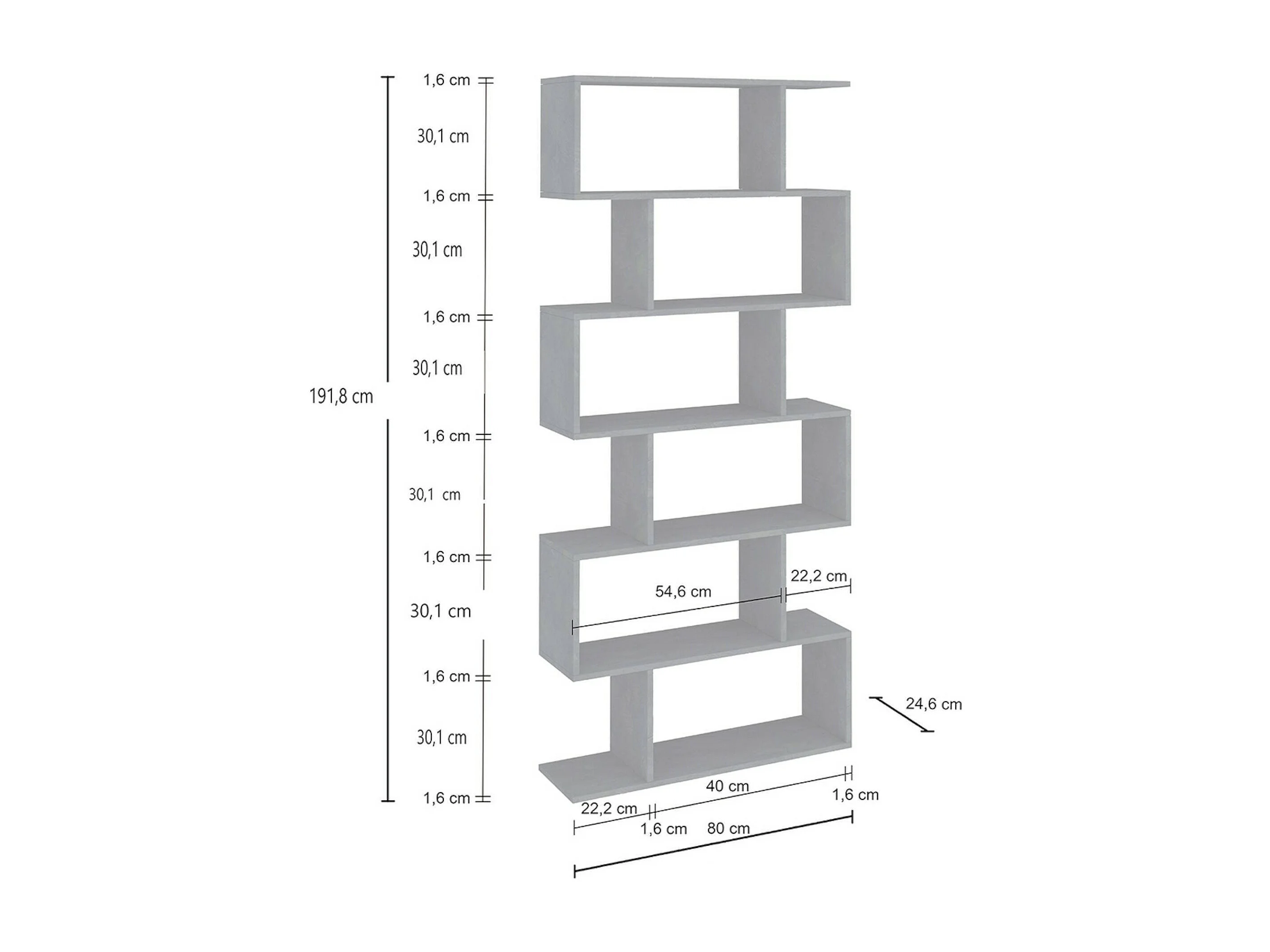 Bibliothèque Dgiovan, Meuble avec étagères, Bibliothèque de bureau, 100% Made in Italy, 80x25h192 cm, Blanc brillant