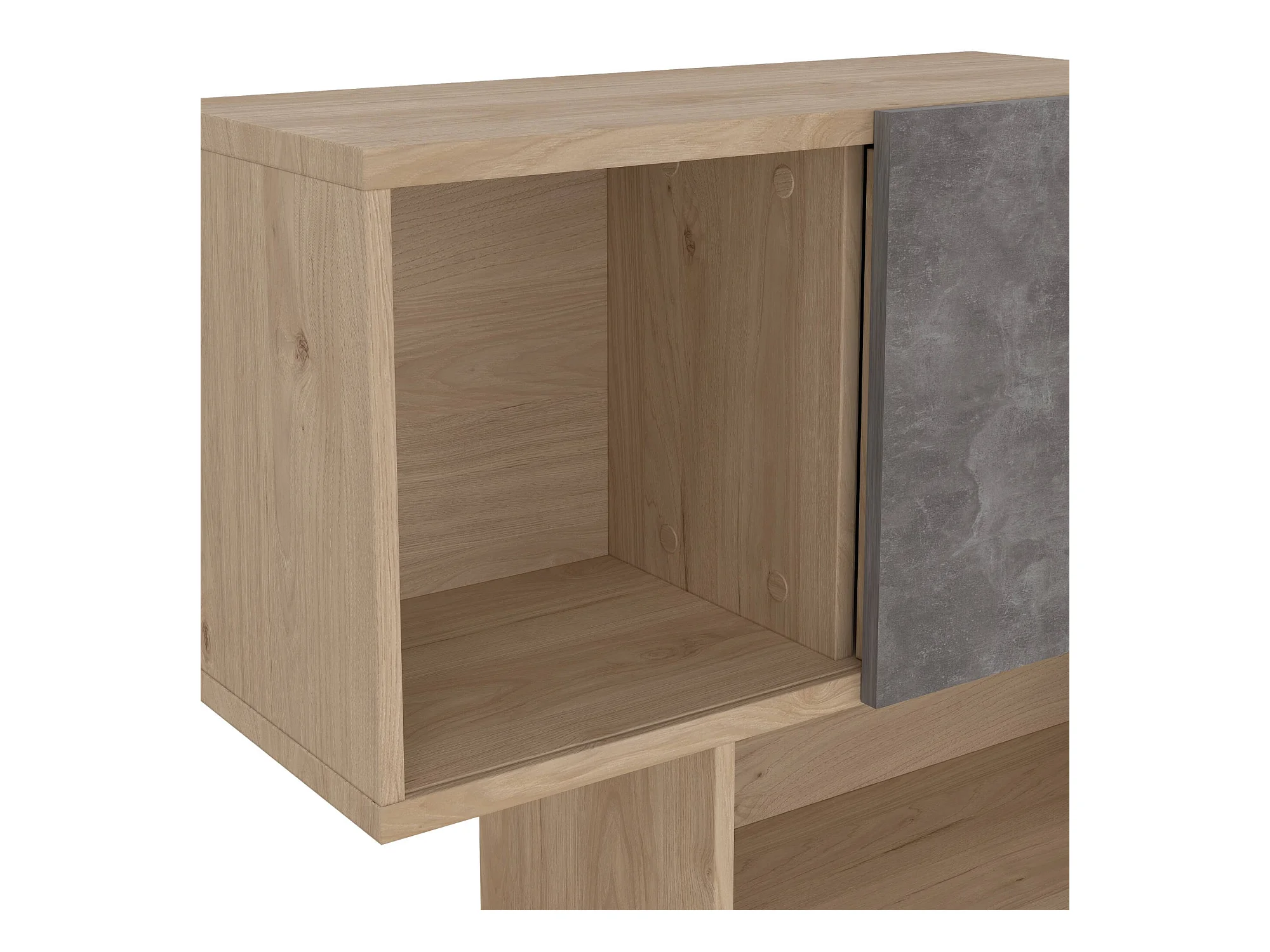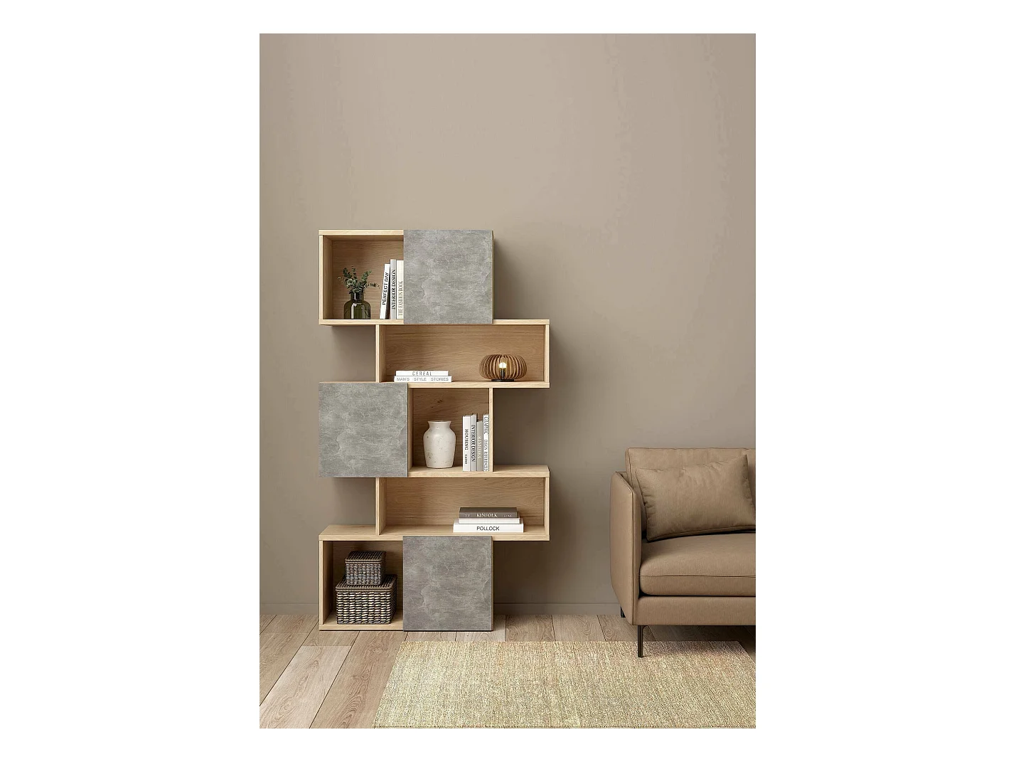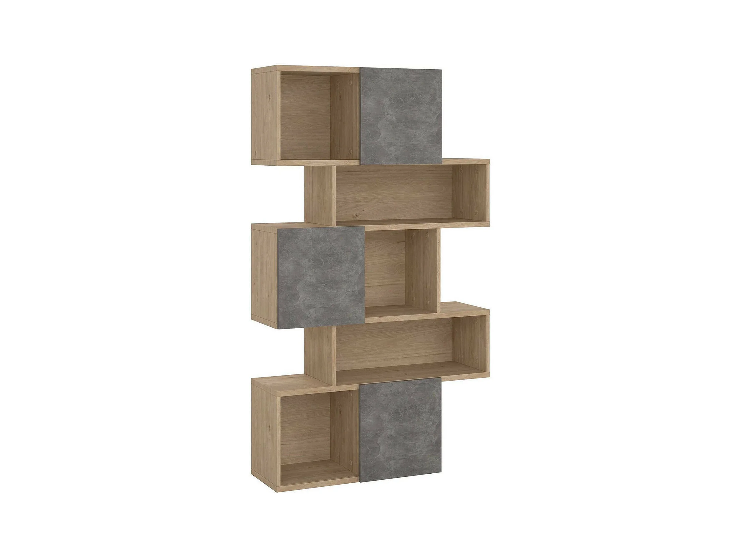 Bibliothèque Dsangall, Etagère de bureau, Porte-livre mobile, Librairie, 96x32 h166 cm, Chêne clair et Ciment