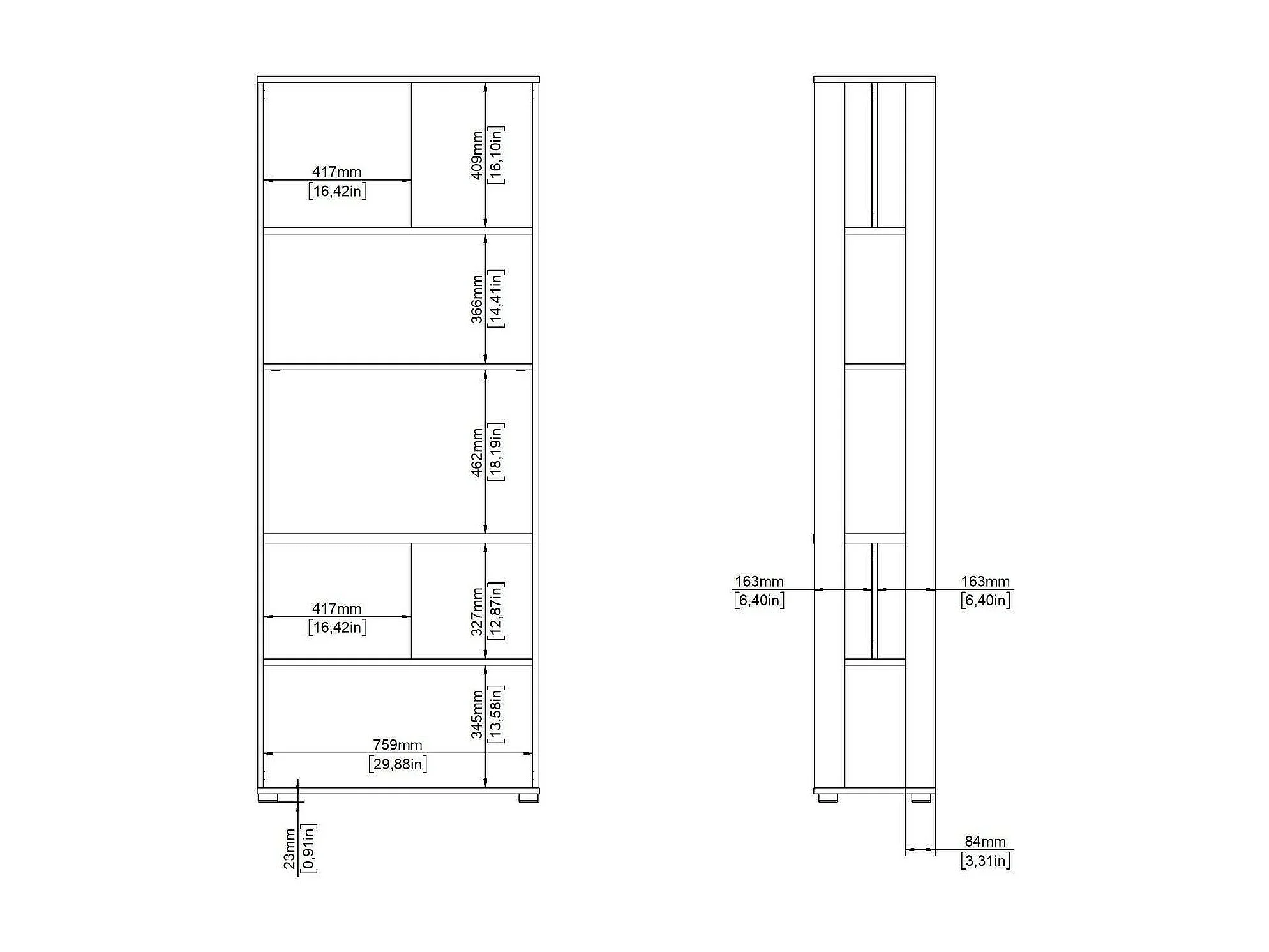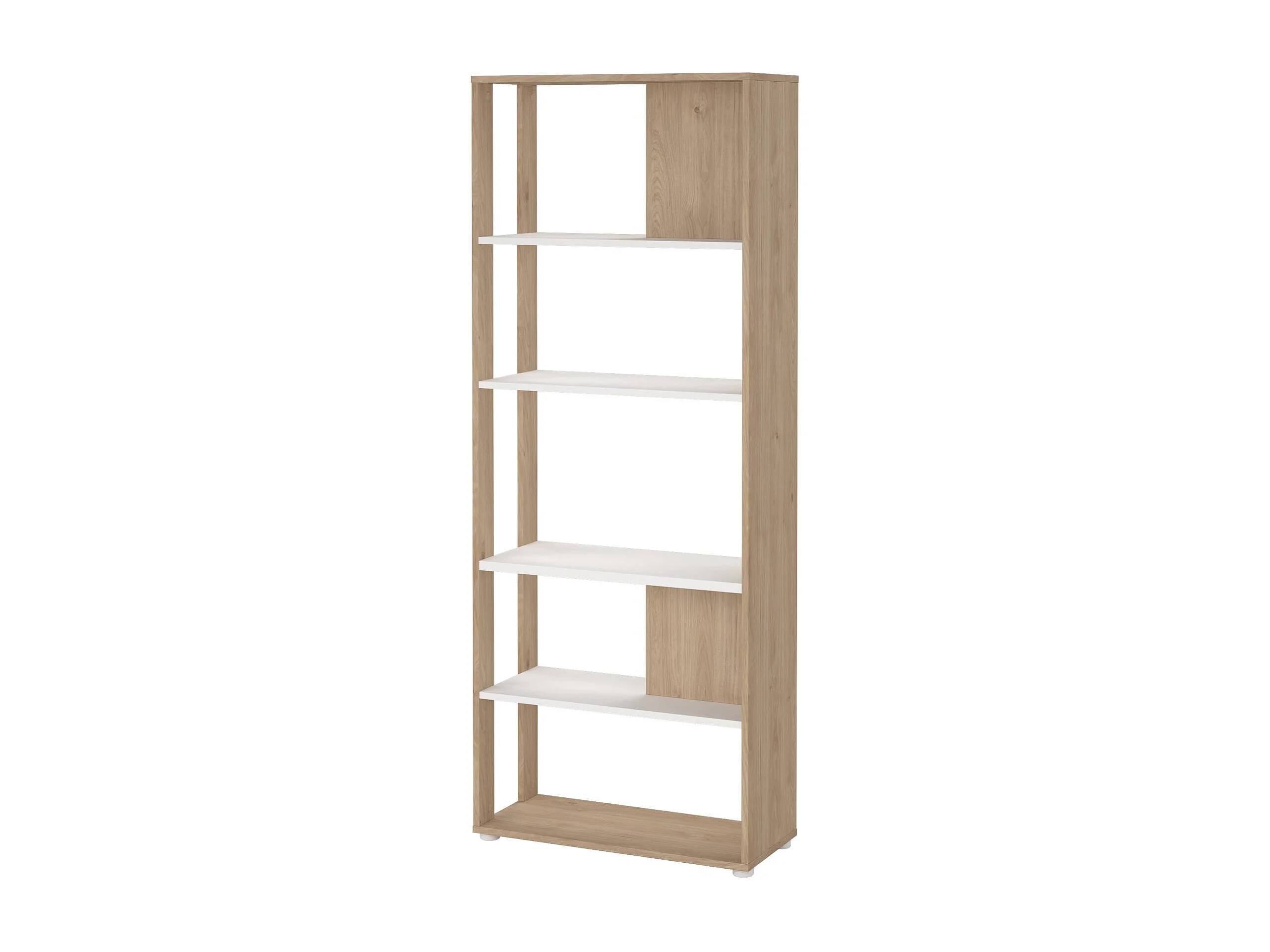 Bibliothèque Dspelt, Etagère de bureau, Porte-livre mobile, Librairie, 80x34 h205 cm, Chêne clair et Blanc