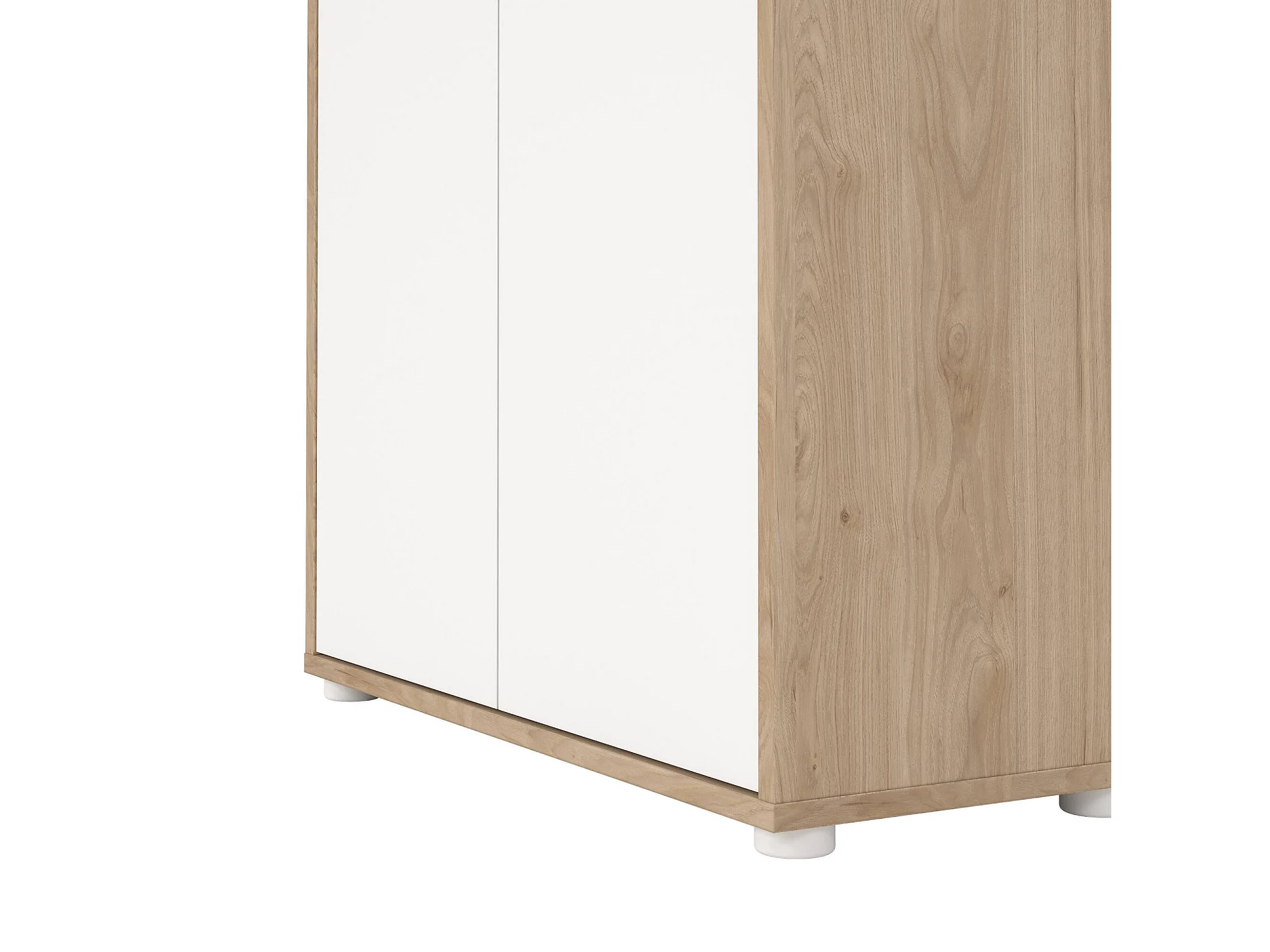 Bibliothèque Dtassott, Etagère de bureau, Porte-livre mobile, Librairie, 80x34 h205 cm, Chêne clair et Blanc