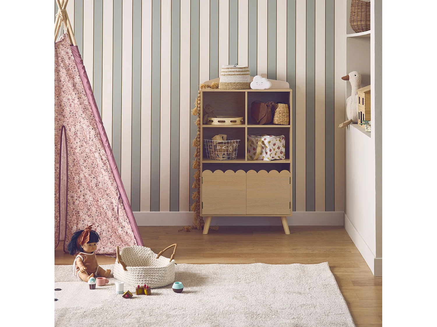 Bibliothèque enfant naturelle 2 portes et 4 étagères