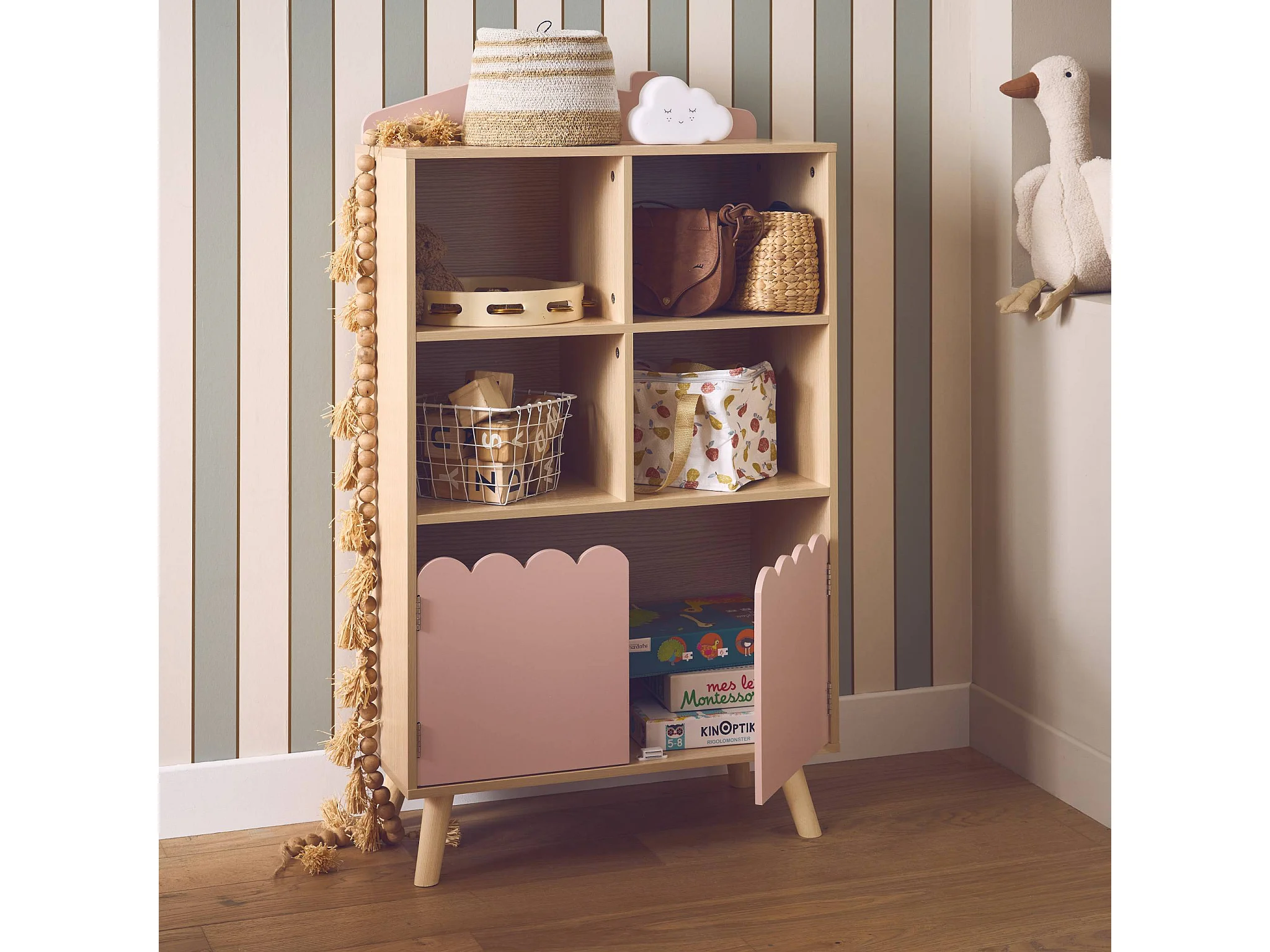 Bibliothèque enfant rose 2 portes et 4 étagères