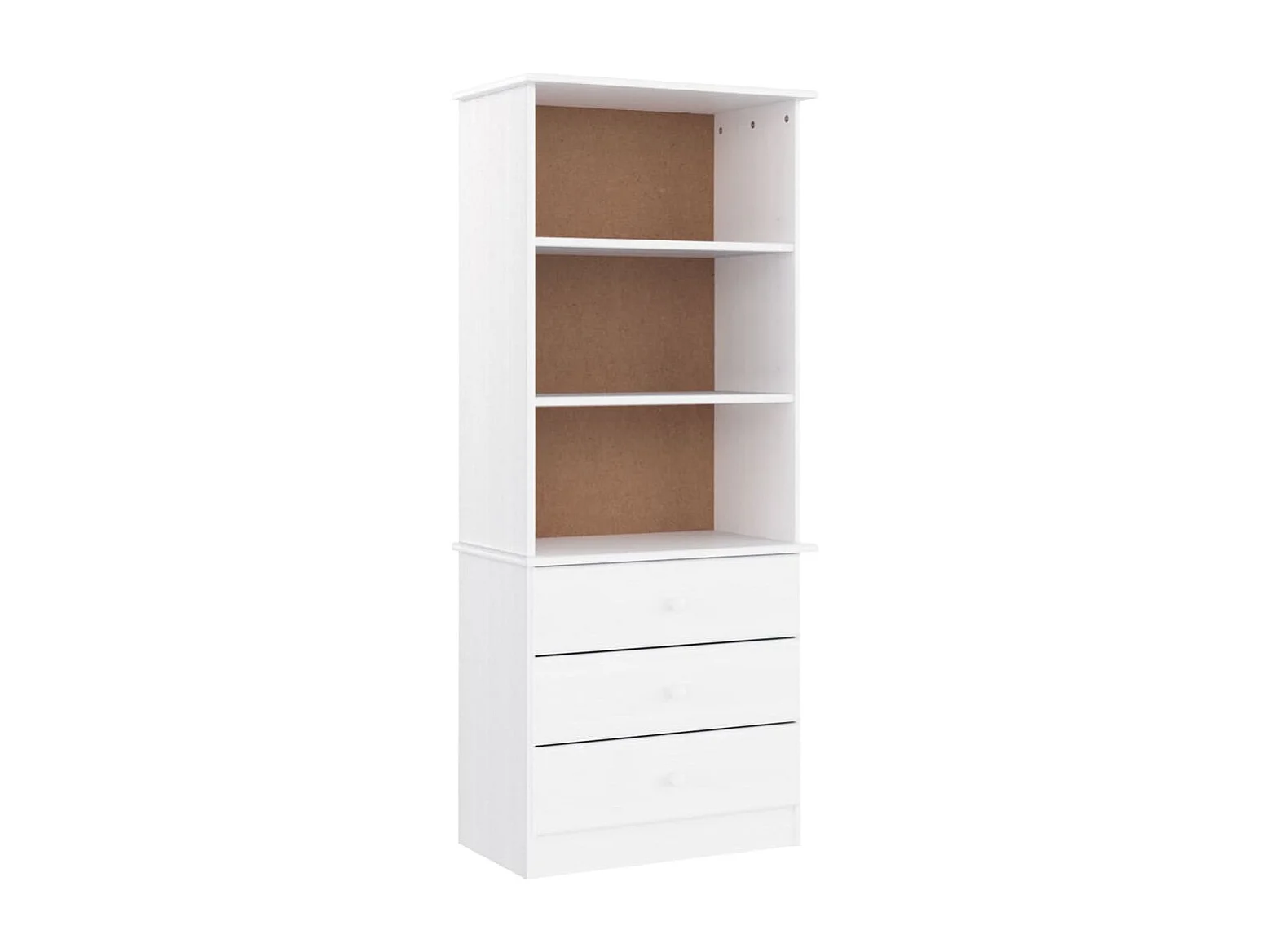 Bibliothèque et tiroirs ALTA blanc 60x35x142 cm bois massif pin