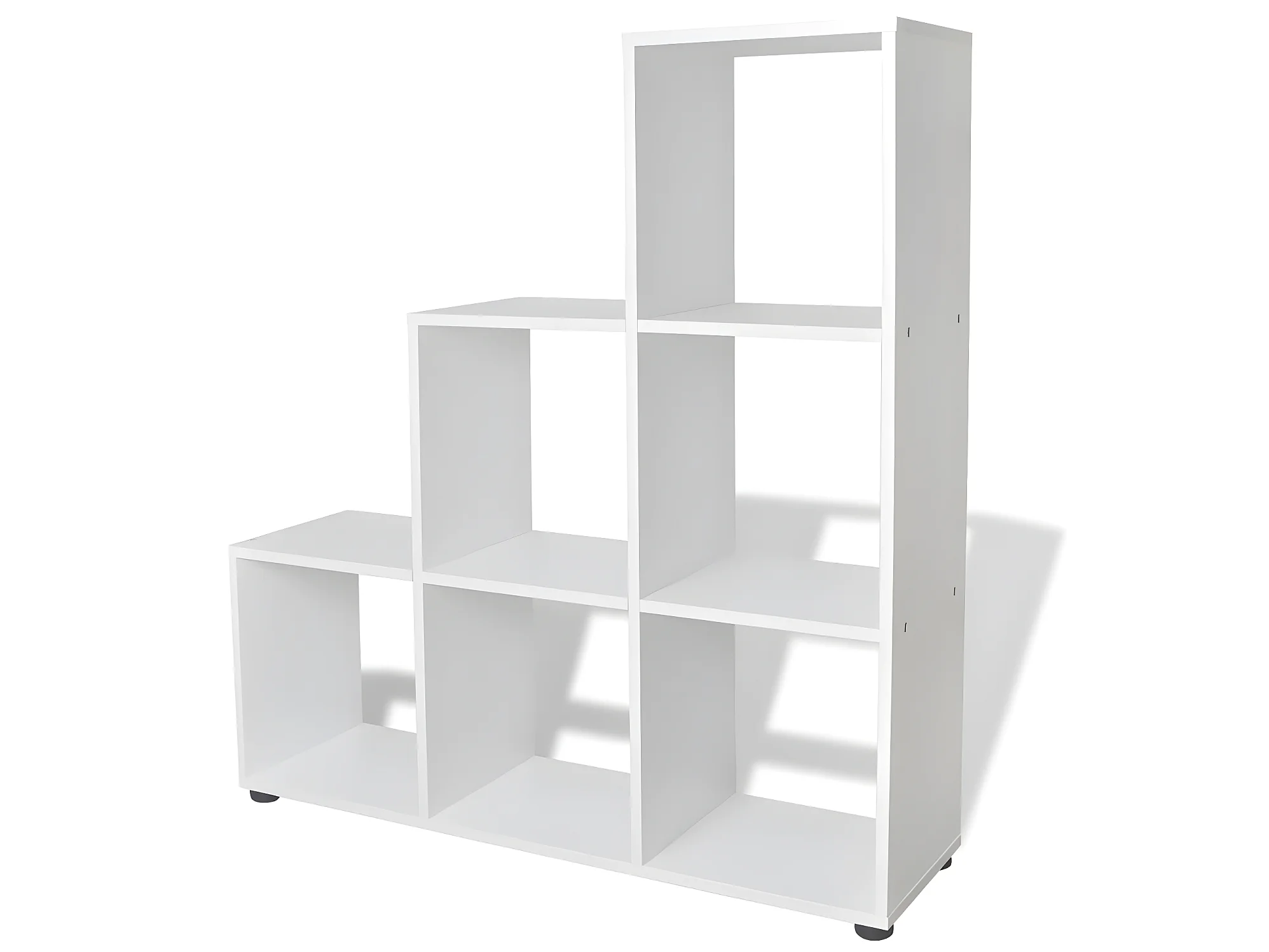 Bibliothèque séparatrice de pièce à 4 niveaux blanc 131,5x29x131,5cm