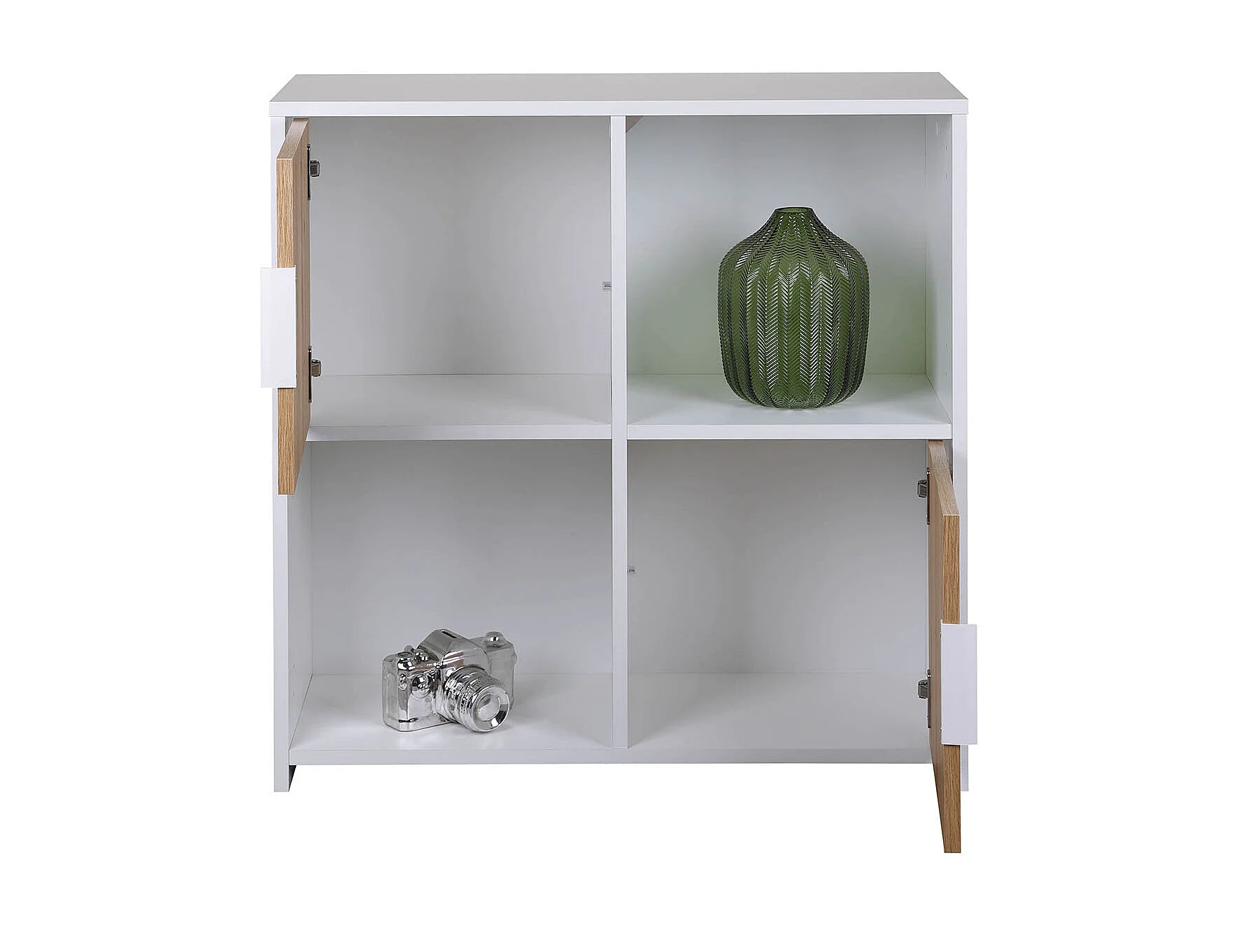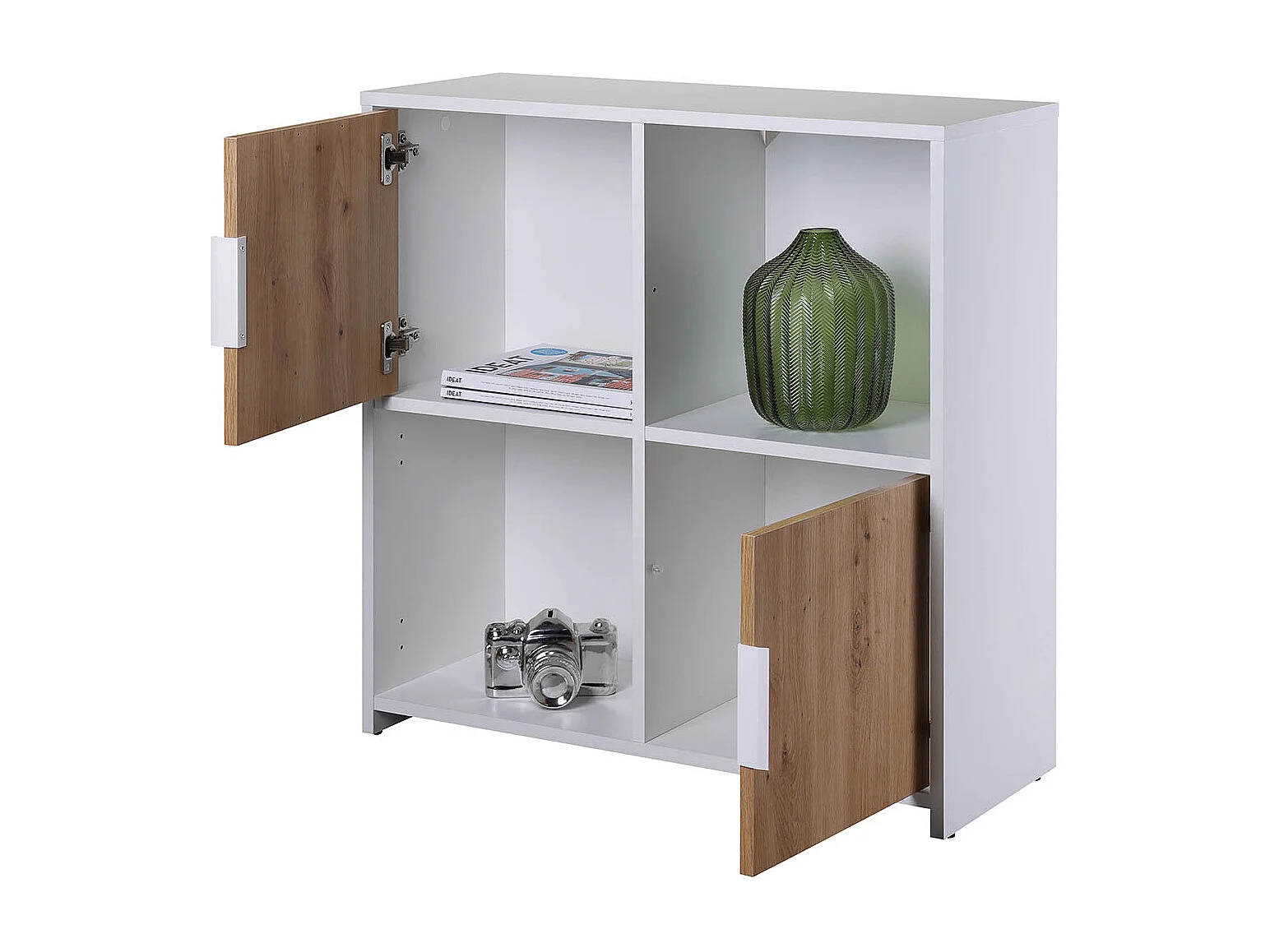 Bibliothèque, étagère avec 2 portes coloris chêne Artisan / blanc - longueur 77 x profondeur 33 x hauteur 77 cm