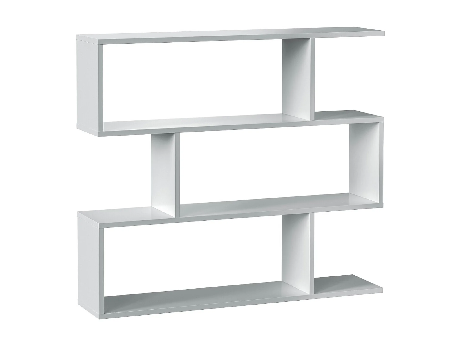 Bibliothèque, étagère basse 3 niveaux en bois mélaminé coloris blanc brillant - Longueur 110 x Profondeur 24 x Hauteur 97 cm