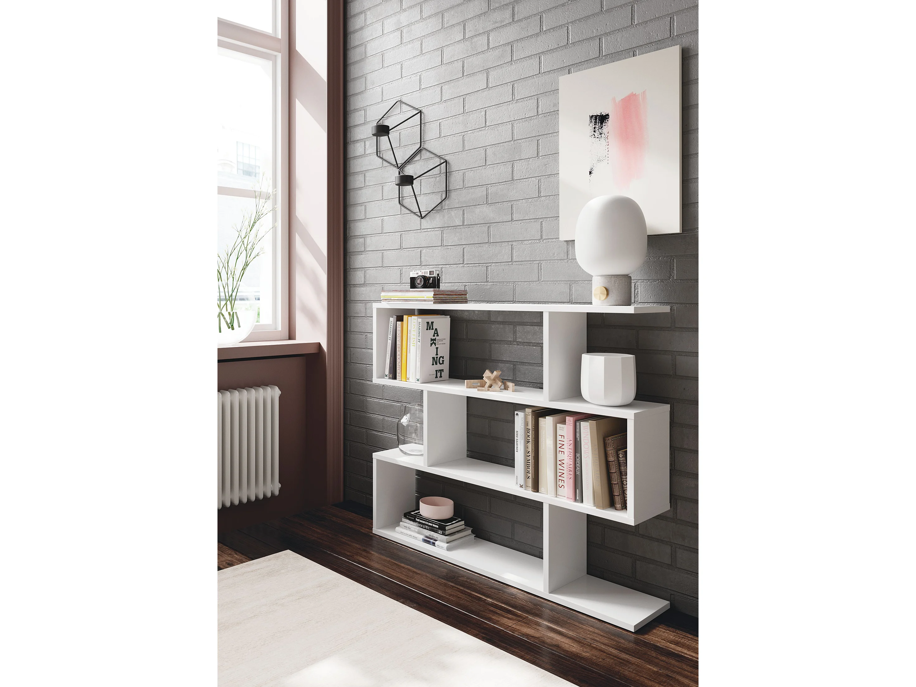 Bibliothèque scandinave blanc mat L140 cm EPURE