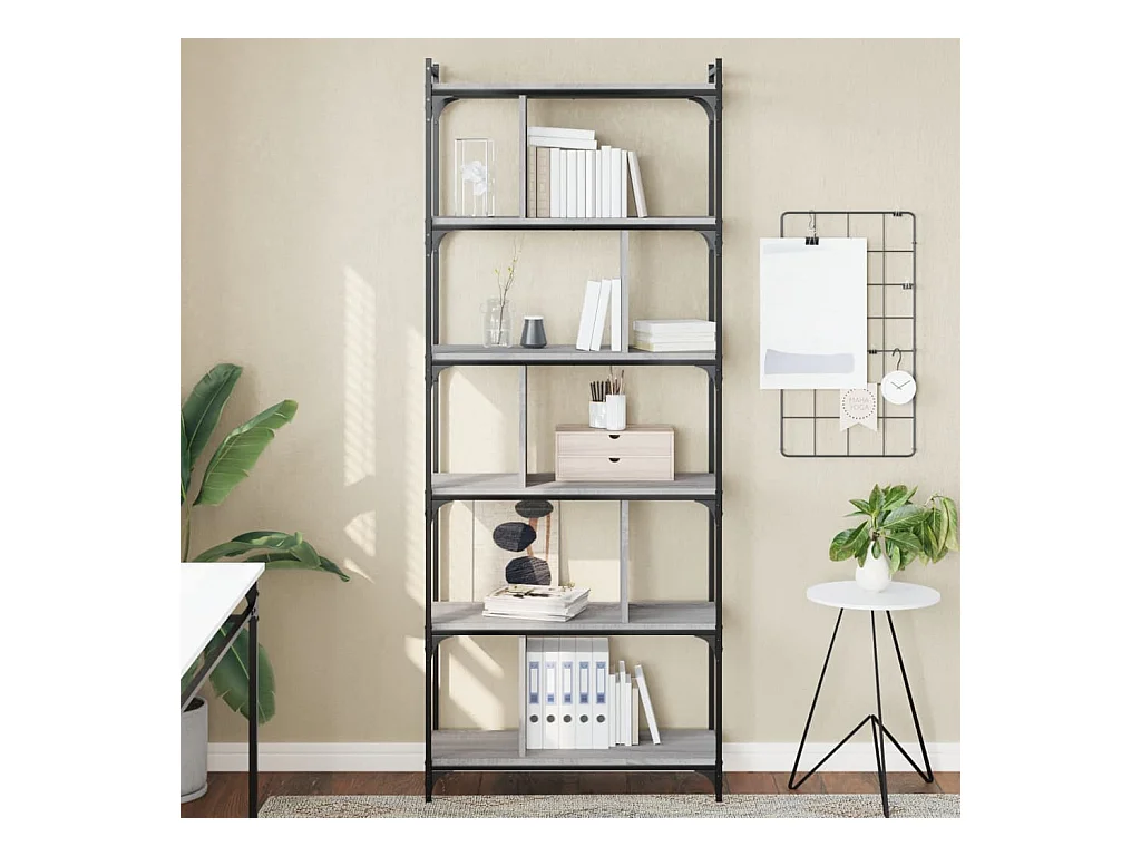 Bibliothèque | Etagère de rangement | Meuble de rangement 6niveaux sonoma gris 76x32x192cm bois d'ingénierie