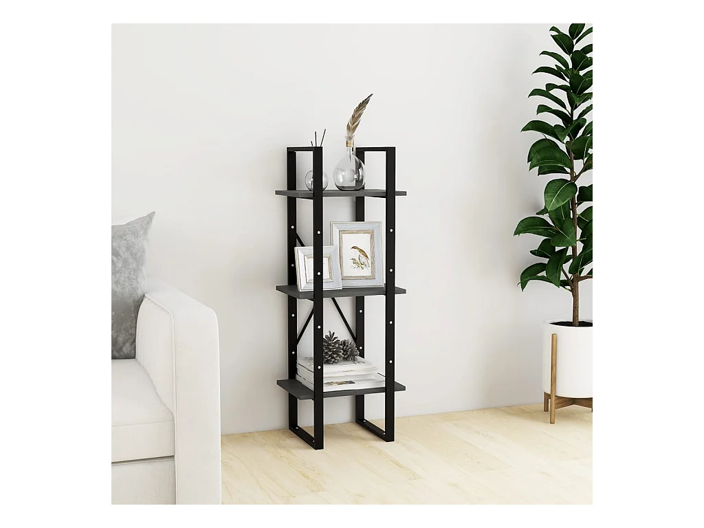 Bibliothèque | Etagère de rangement | Meuble de rangement à 3 niveaux Gris 40x30x105 cm Bois de pin massif