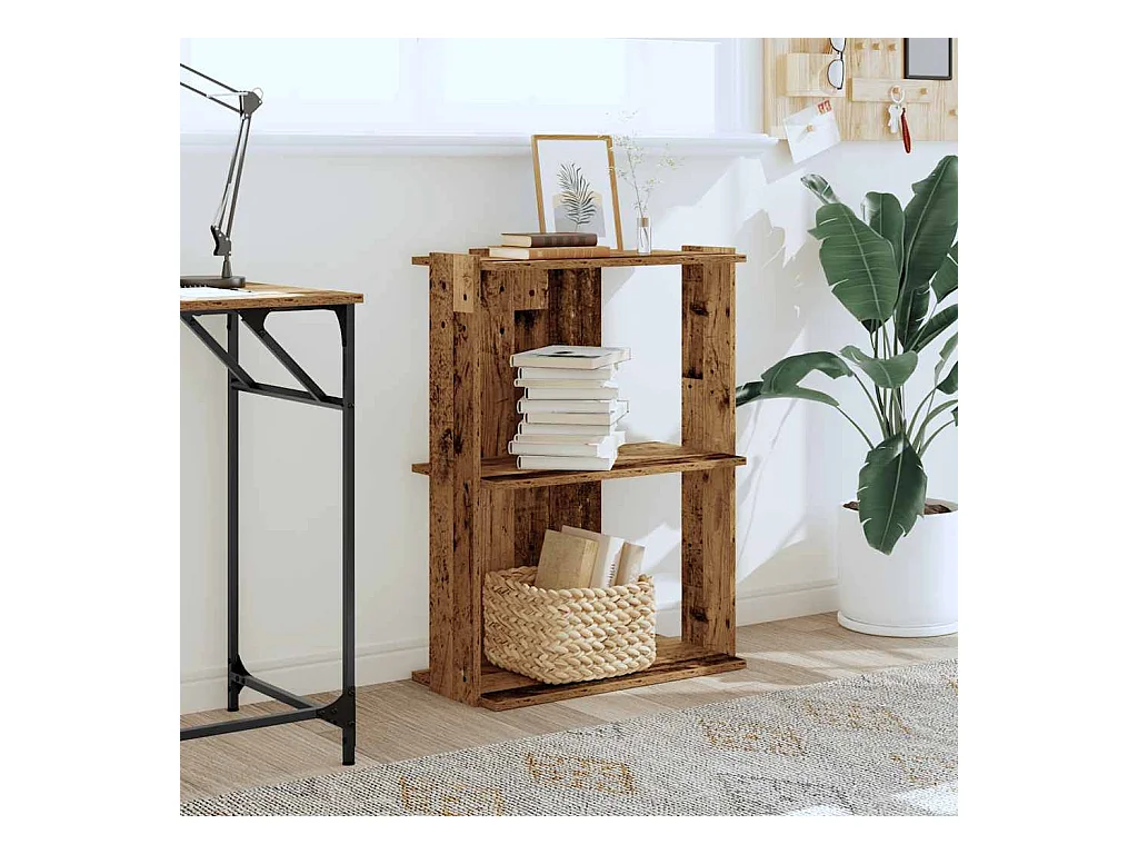 Bibliothèque | Etagère de rangement | Meuble de rangement à 3 niveaux vieux bois 60x30x80 cm bois ingénierie