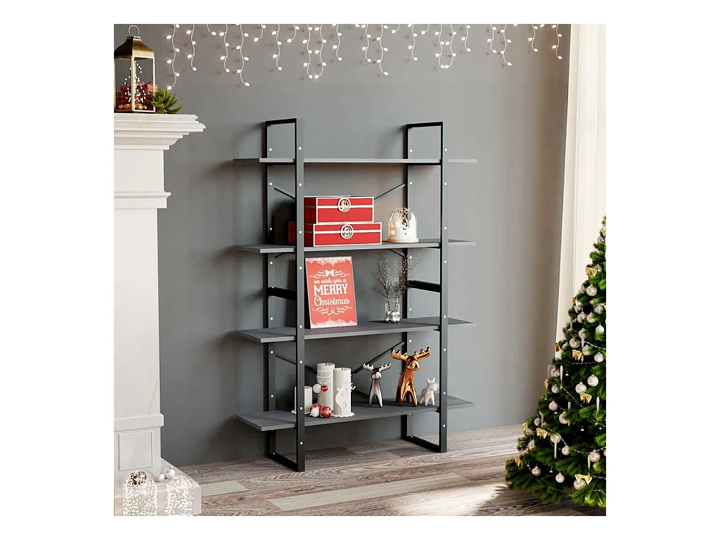 Bibliothèque | Etagère de rangement | Meuble de rangement à 5 niveaux Gris 100x30x175 cm Bois de pin