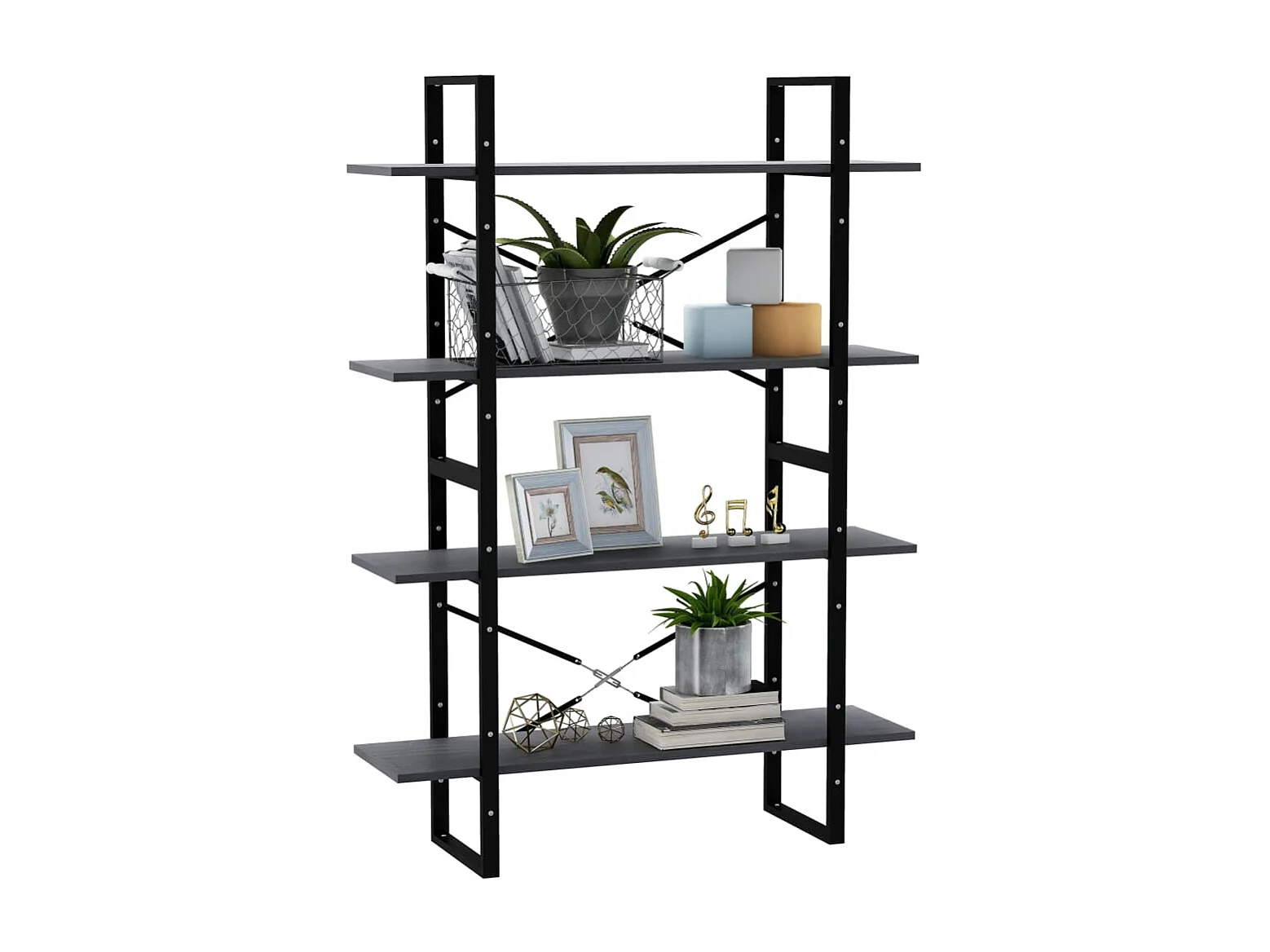 Bibliothèque | Etagère de rangement | Meuble de rangement à 4 niveaux Gris 100x30x140 cm Bois de pin massif