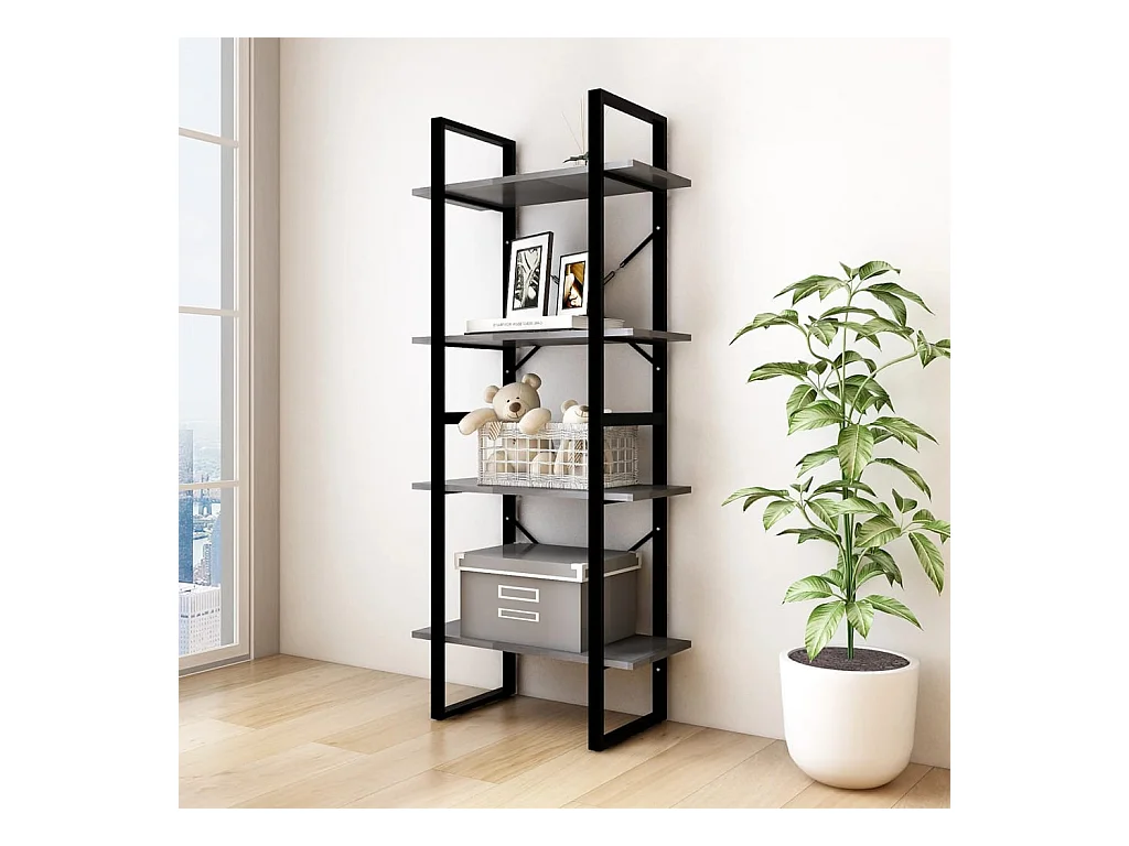 Bibliothèque | Etagère de rangement | Meuble de rangement à 4 niveaux Gris 60x30x140 cm Bois de pin massif