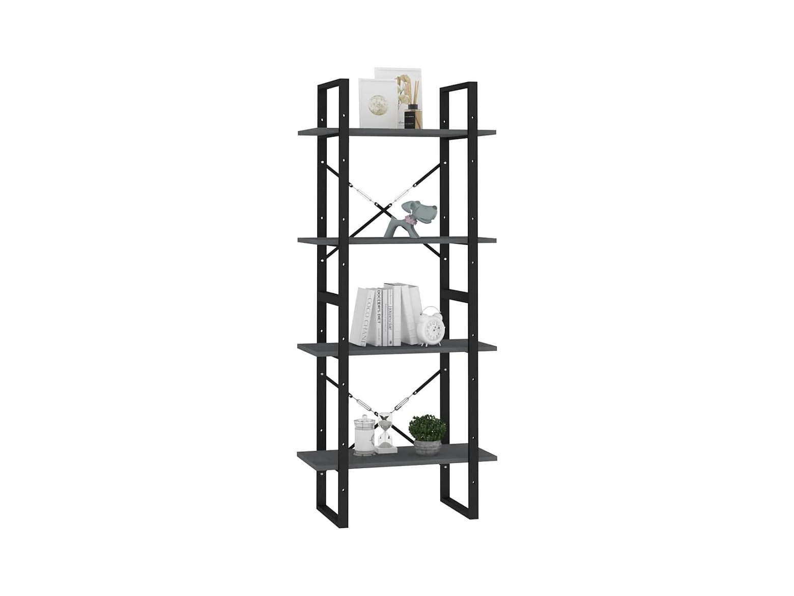 Bibliothèque | Etagère de rangement | Meuble de rangement à 4 niveaux Gris 80x30x140 cm Bois de pin massif