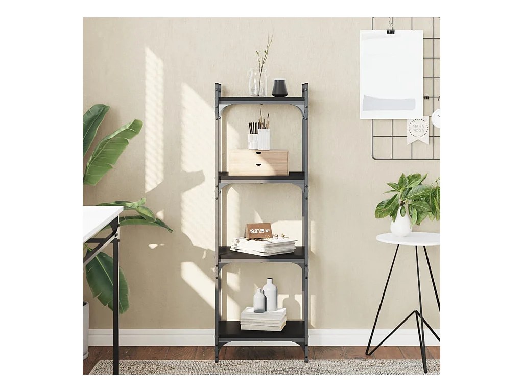 Bibliothèque | Etagère de rangement | Meuble de rangement à 4 niveaux noir 40x30x120 cm bois d'ingénierie