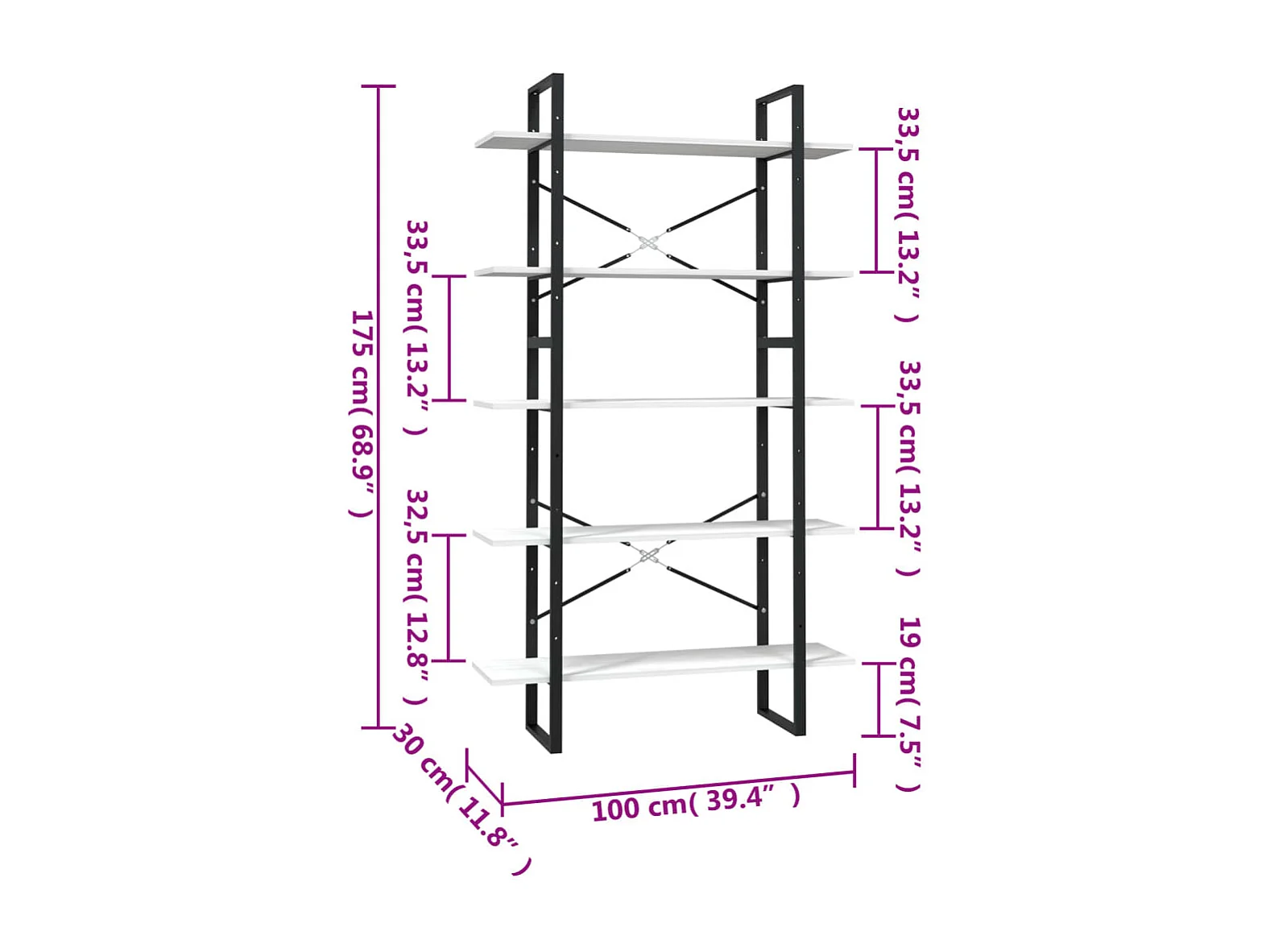 Bibliothèque | Etagère de rangement | Meuble de rangement à 5 niveaux Blanc 100x30x175 cm Bois de pin