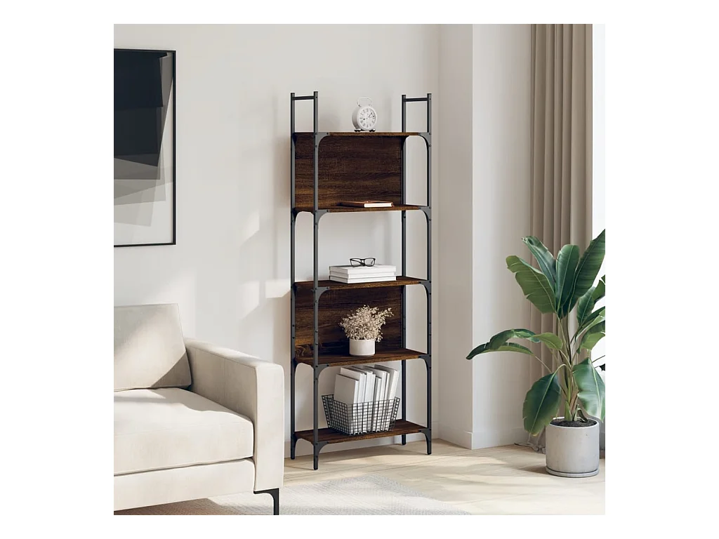Bibliothèque | Etagère de rangement | Meuble de rangement à 5 niveaux chêne fumé 60,5x24x166,5 cm