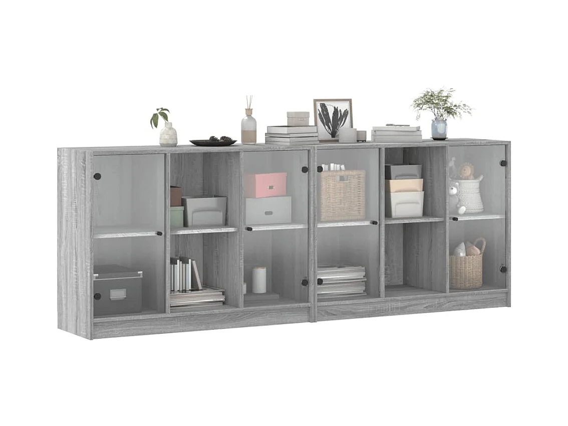 Bibliothèque | Etagère de rangement | Meuble de rangement avec portes sonoma gris 204x37x75 cm