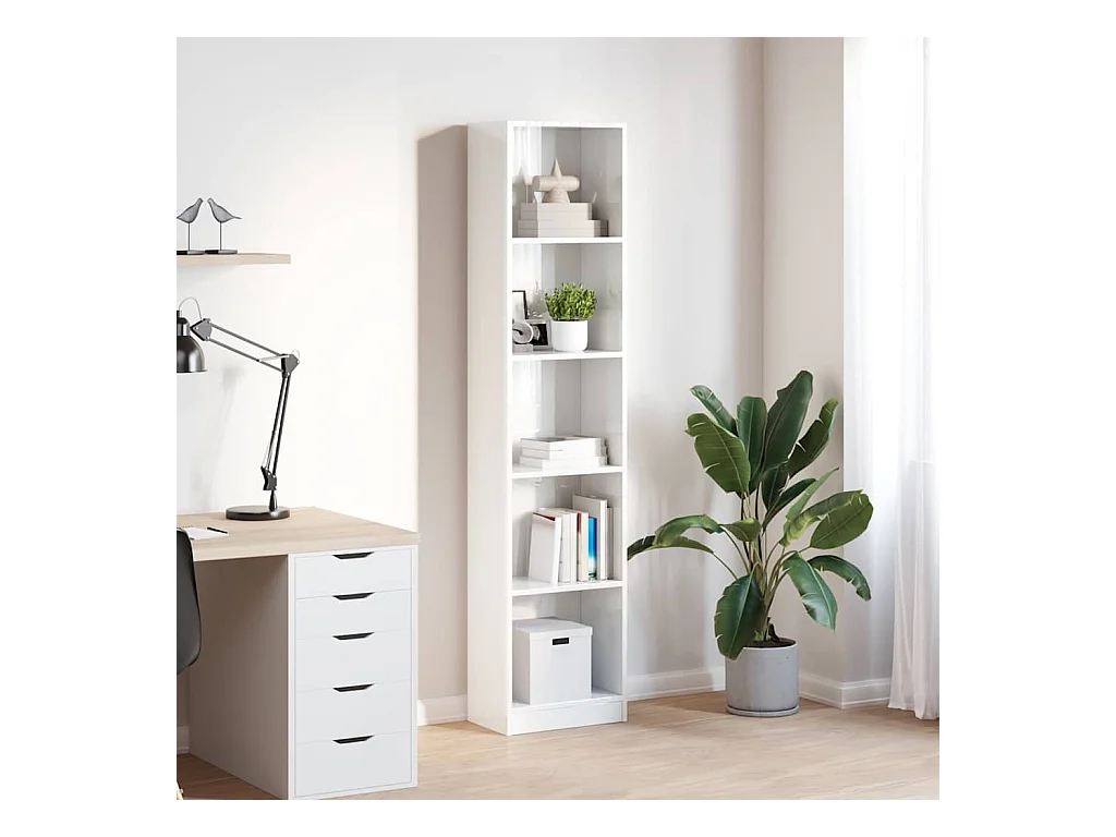 Bibliothèque | Etagère de rangement | Meuble de rangement blanc brillant 40x24x143 cm bois d'ingénierie
