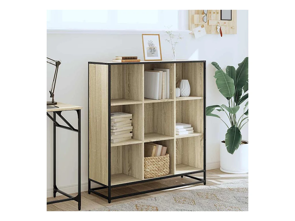 Bibliothèque | Etagère de rangement | Meuble de rangement chêne sonoma 97,5x33x107,5cm bois ingénierie métal