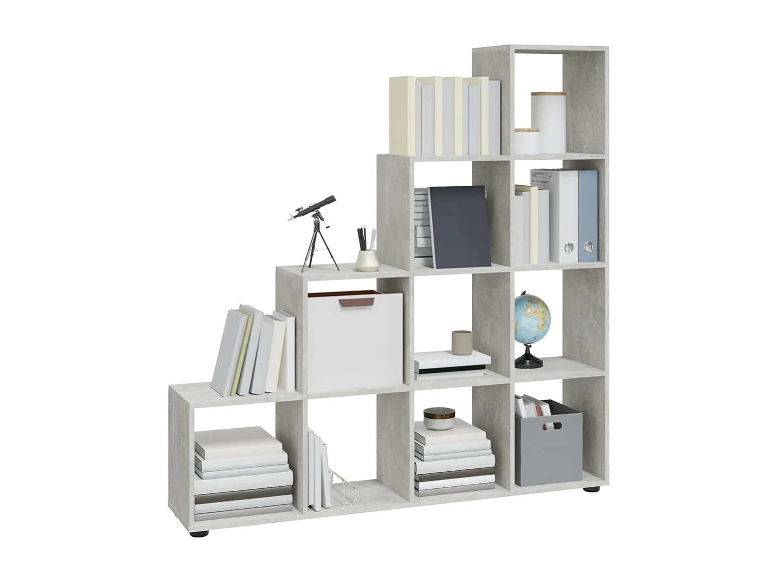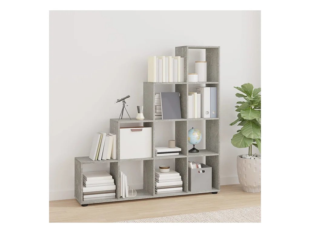 Bibliothèque | Etagère de rangement | Meuble de rangement escalier Gris béton 142 cm Bois d'ingénierie