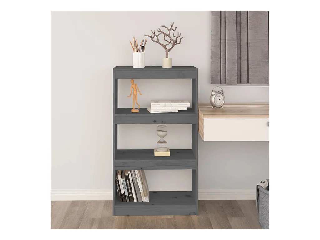 Bibliothèque | Etagère de rangement | Meuble de rangement à 2 niveaux Gris 60x30x70 cm Bois de pin massif