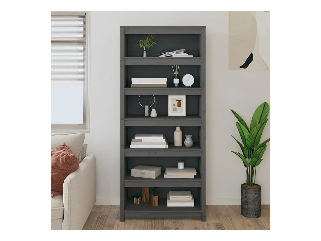Bibliothèque | Etagère de rangement | Meuble de rangement Gris 80x35x183 cm Bois de pin massif