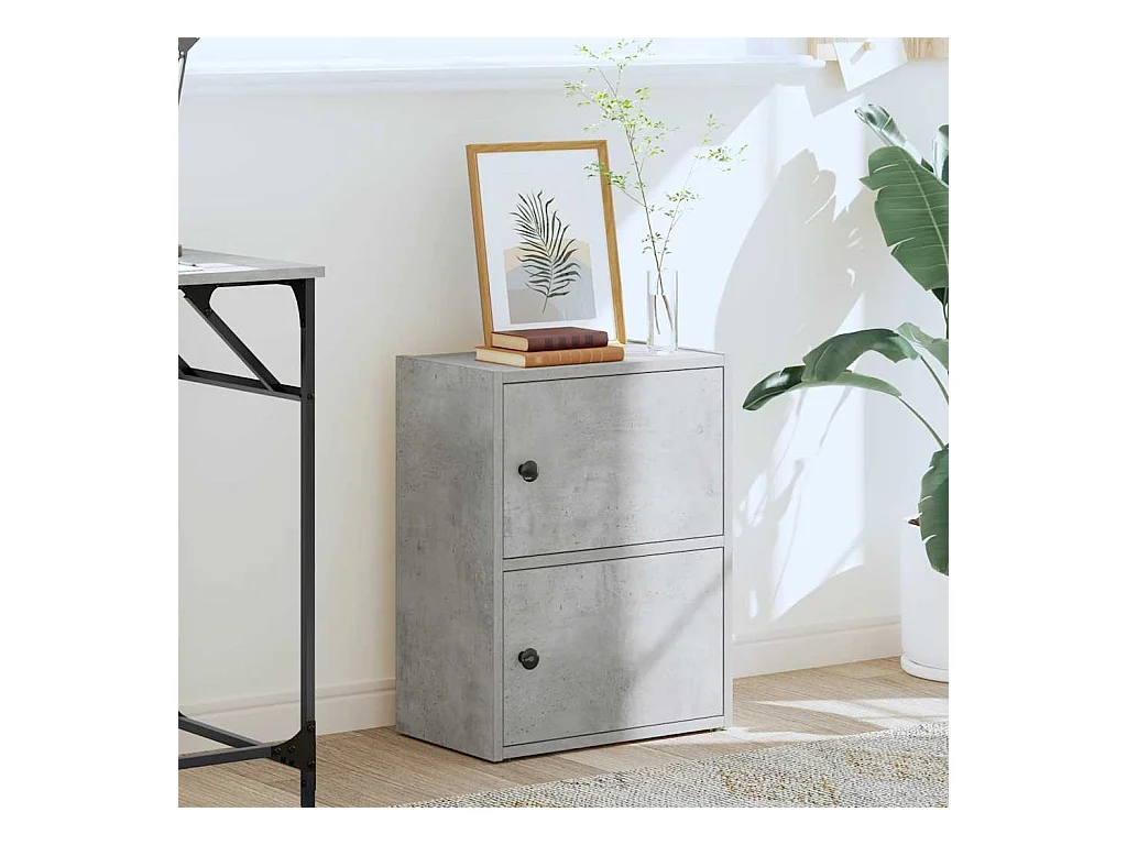 Bibliothèque | Etagère de rangement | Meuble de rangement à 2 niveaux gris béton bois d'ingénierie